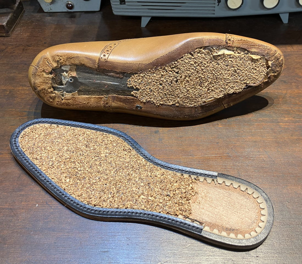 在釣入後的鞋面背面以及鞋底和中底的空間中,充滿了(中物)來自葡萄牙的『粒練り軟木』。與古德伊爾製法的鞋子一樣,隨著穿著的時間增加,軟木會「沉入」,最終變化為符合穿著者足型的形狀的鞋墊(中底)。
