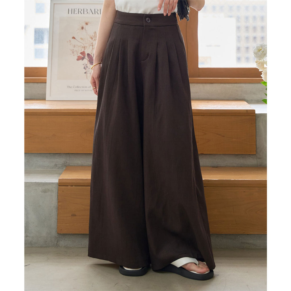 ◇コウベレタス KOBE LETTUCE 神戸レタス 亞麻觸感寬鬆褲 [M4247](棕色)。