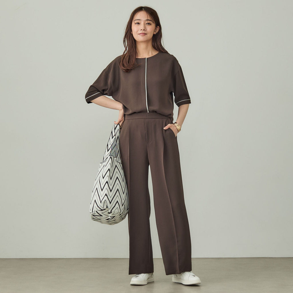程適的垂感的身體貼合材料,雖然有放鬆感,但仍然有整潔感的漂亮寬褲。