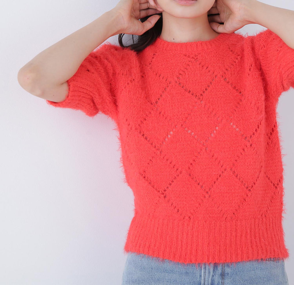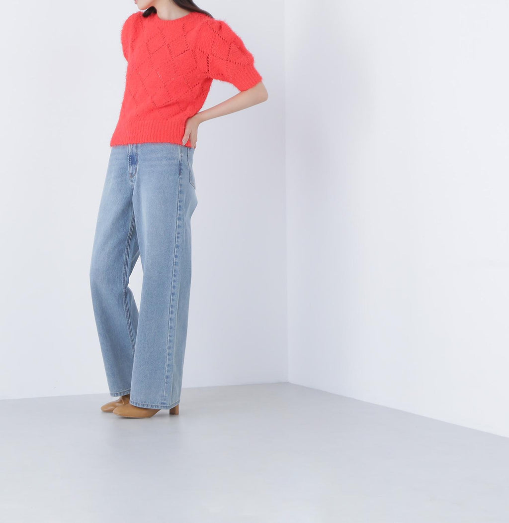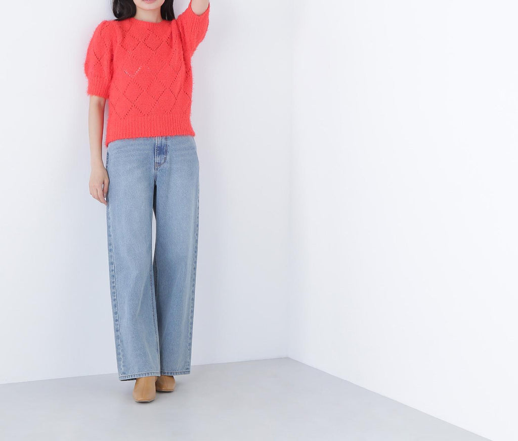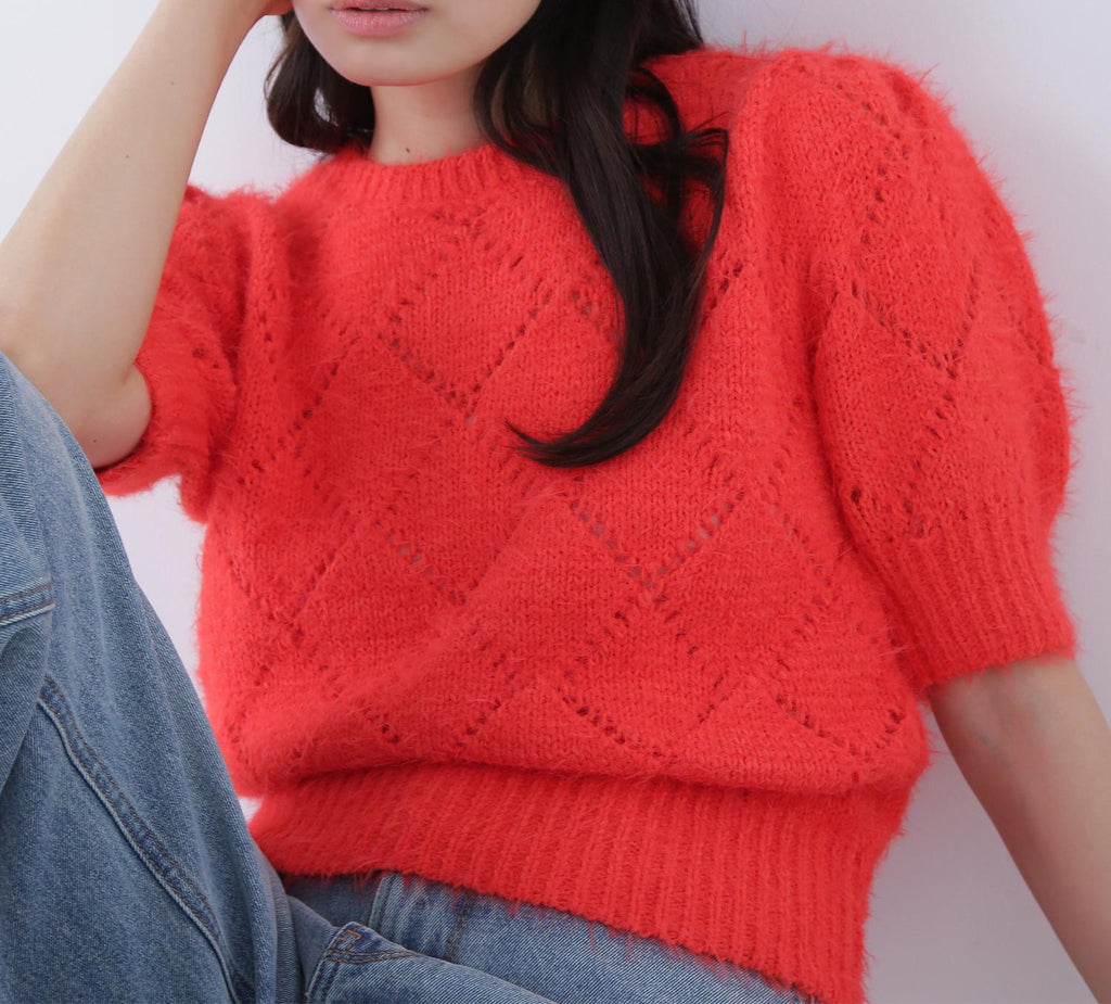 使用柔軟毛線製成的孔眼針織衫。只需搭配一件即可打造秋冬風格。袖子為寬鬆袖,身形尺寸緊湊。設計不挑搭配,下身可以搭配裙子或褲子都很容易。