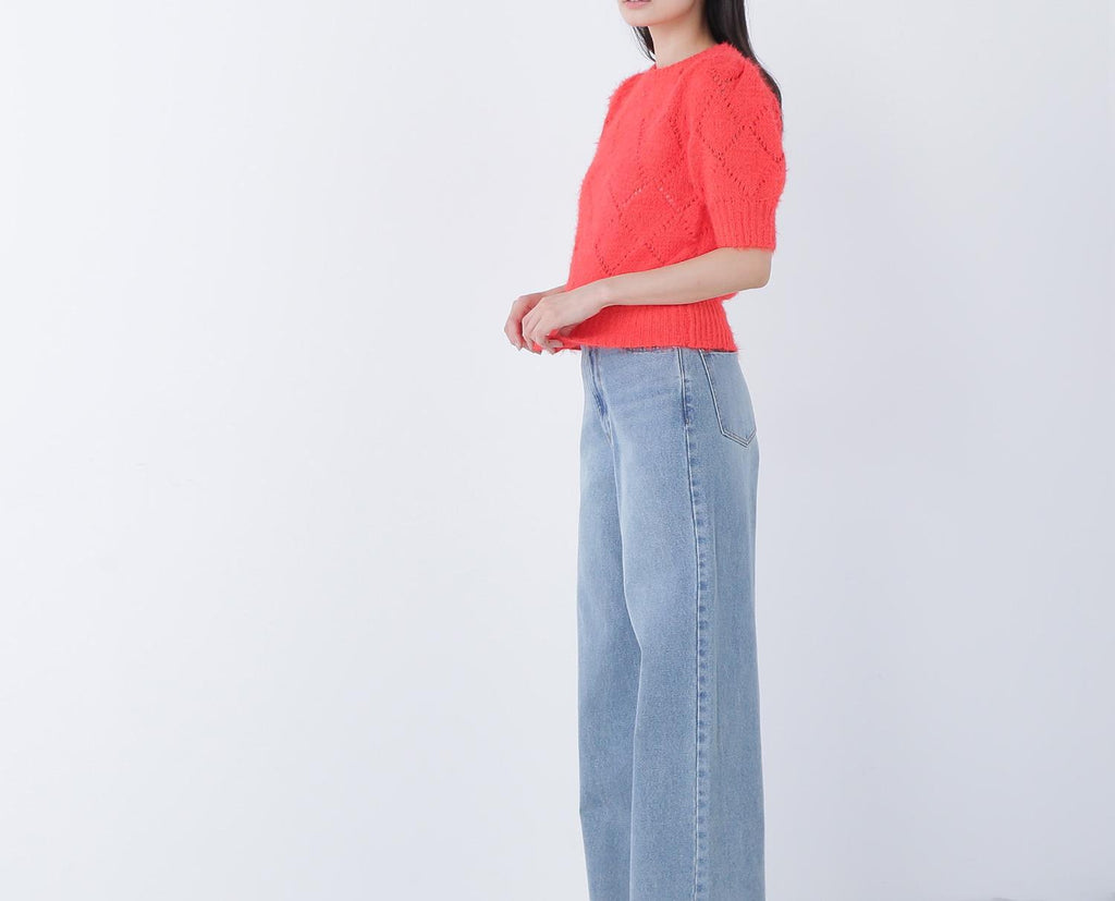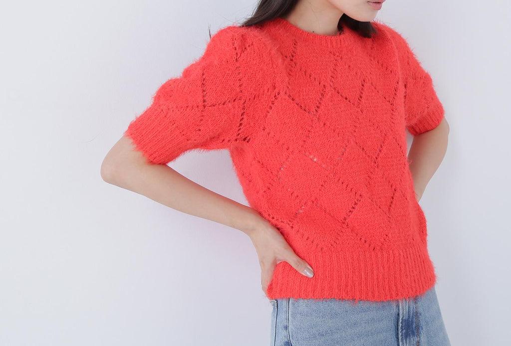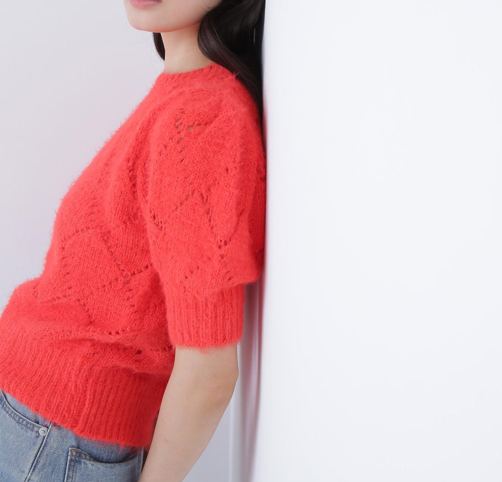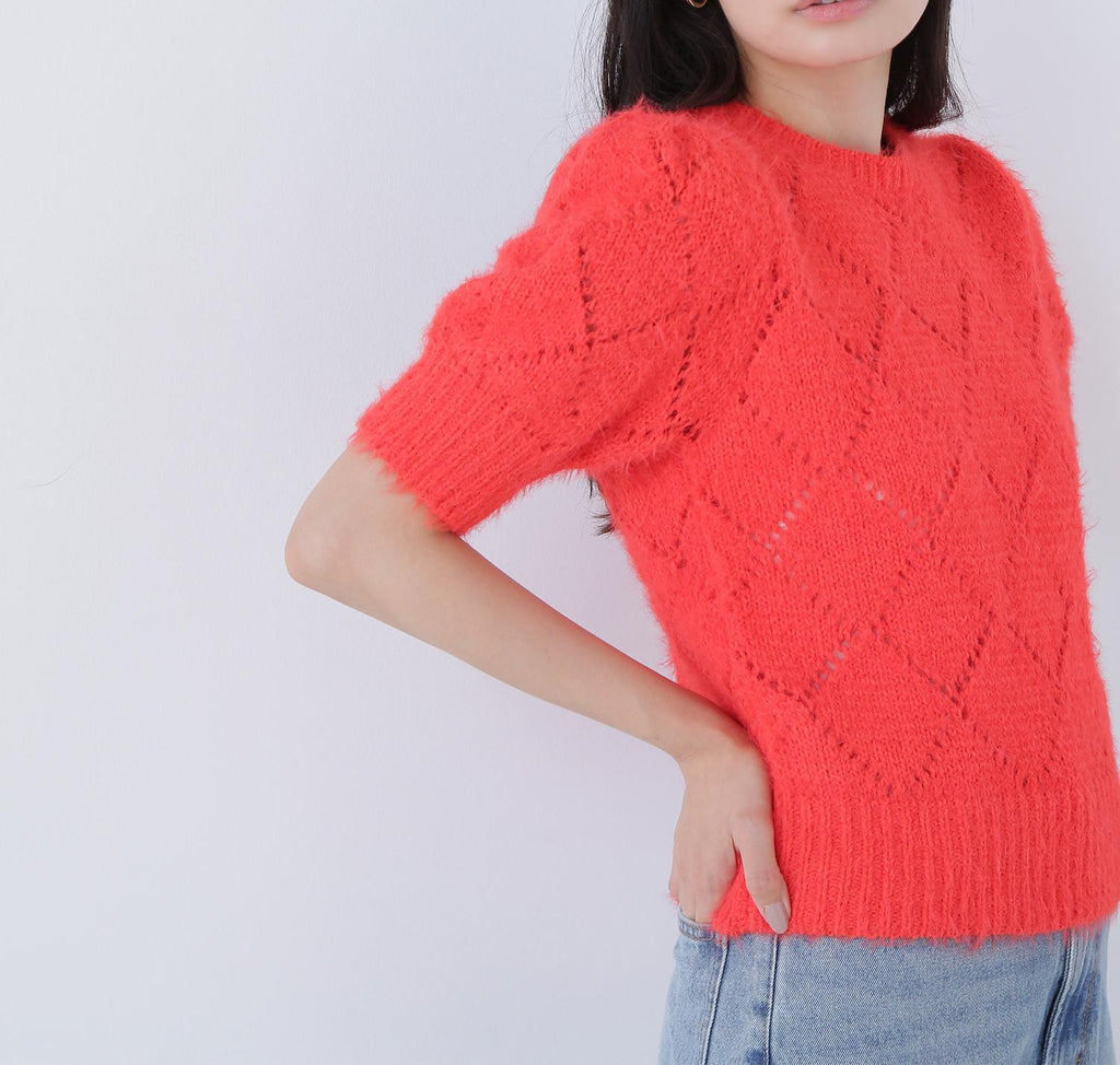 使用柔軟毛線製成的孔眼針織衫。只需搭配一件即可打造秋冬風格。袖子為寬鬆袖,身形尺寸緊湊。設計不挑搭配,下身可以搭配裙子或褲子都很容易。