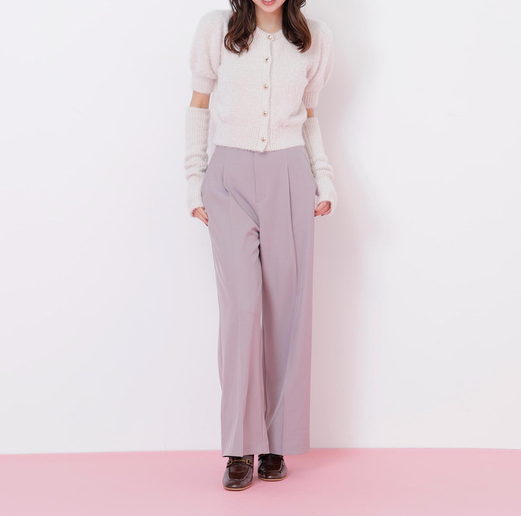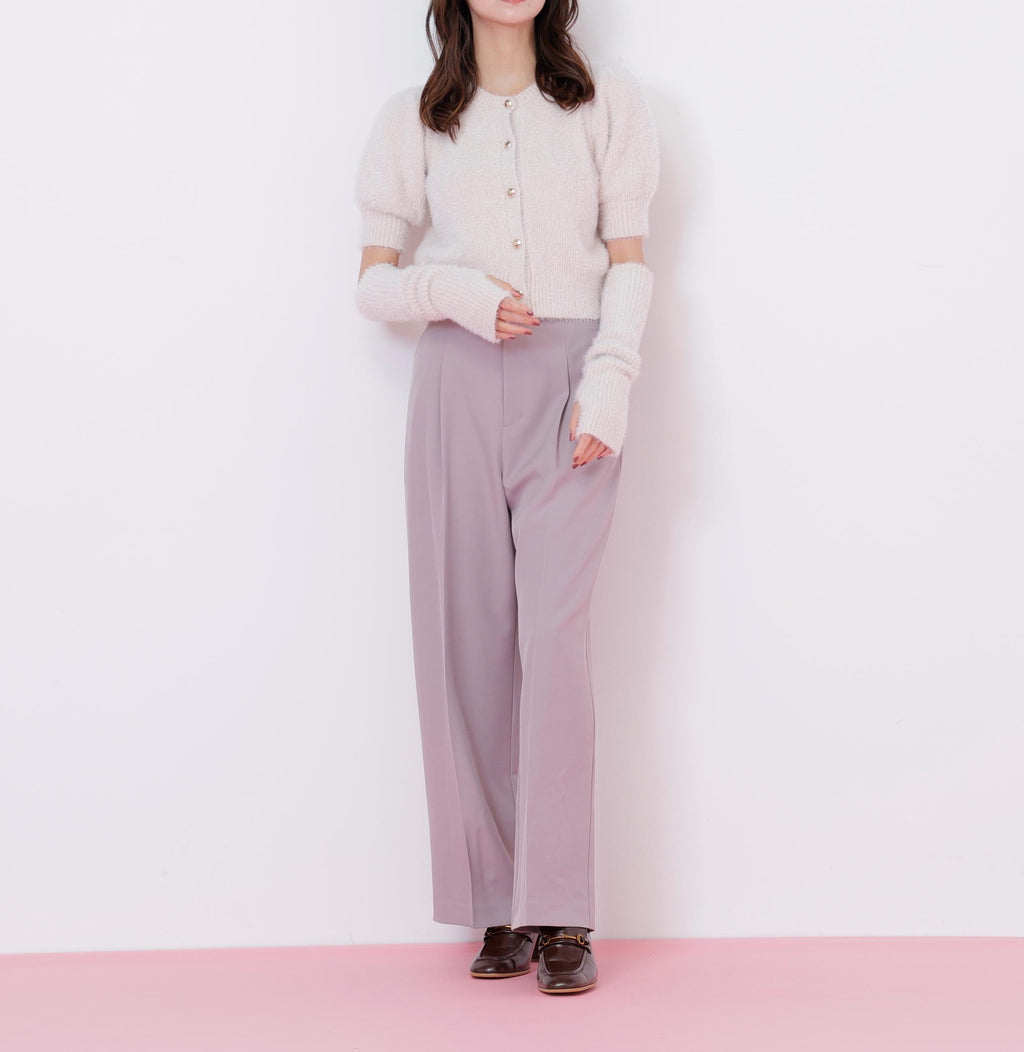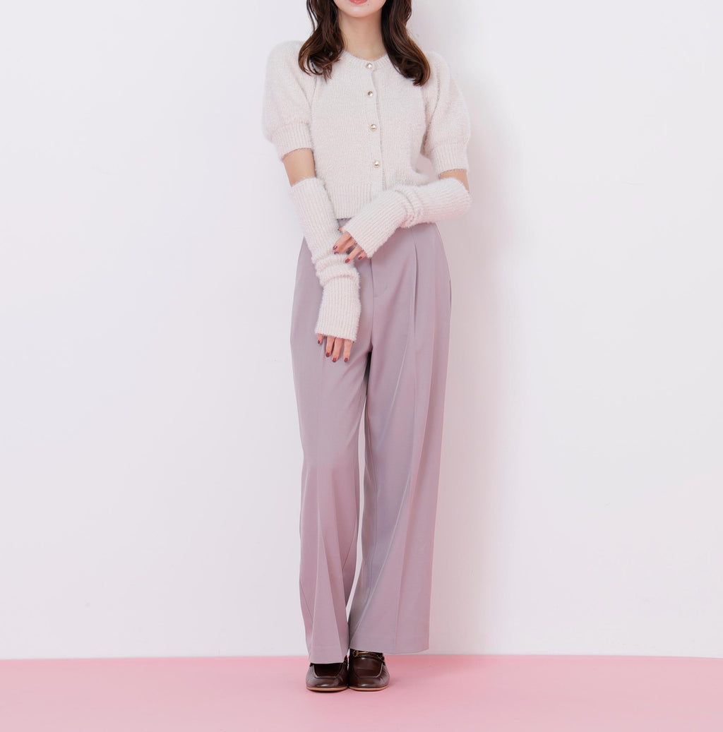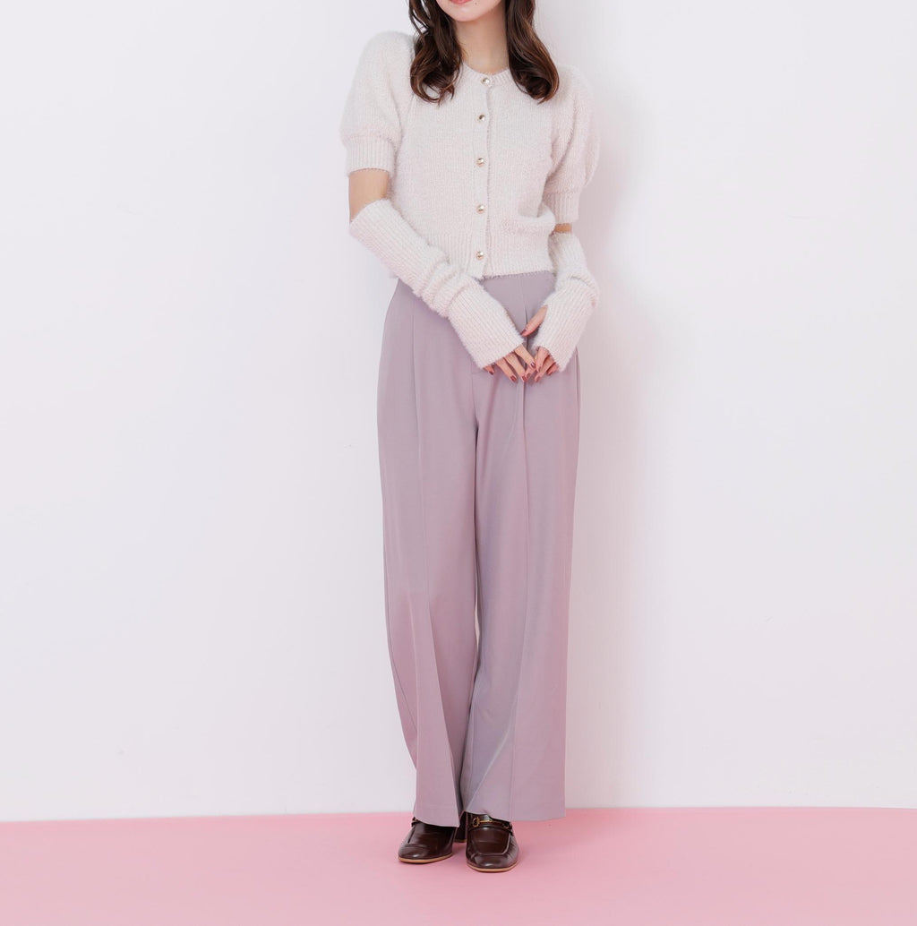 秋冬氛圍高漲的質感為搭配增添亮點的開襟毛衣上衣。閃光球和短款羽毛紗線交織編織而成的原創編織。拆下手臂保暖器後,也可以作為短袖開襟毛衣穿搭。與格子裙、層層裙和迷你下著都非常搭配。※由於拍攝時的照明原因,顏色可能會看起來不同。