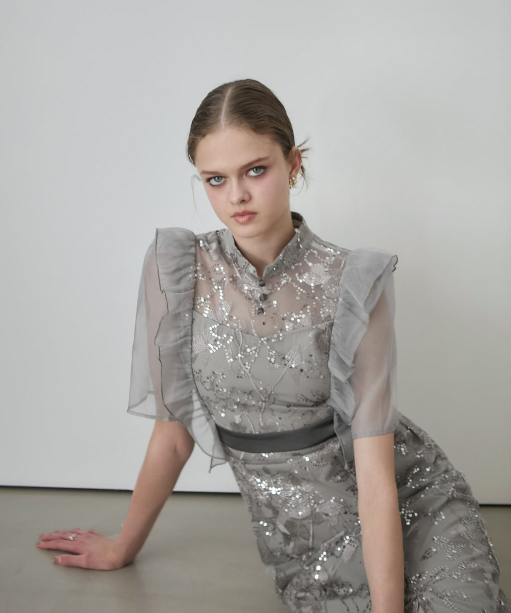 繊細的透視布料和亮片刺繡優雅閃爍的連衣裙