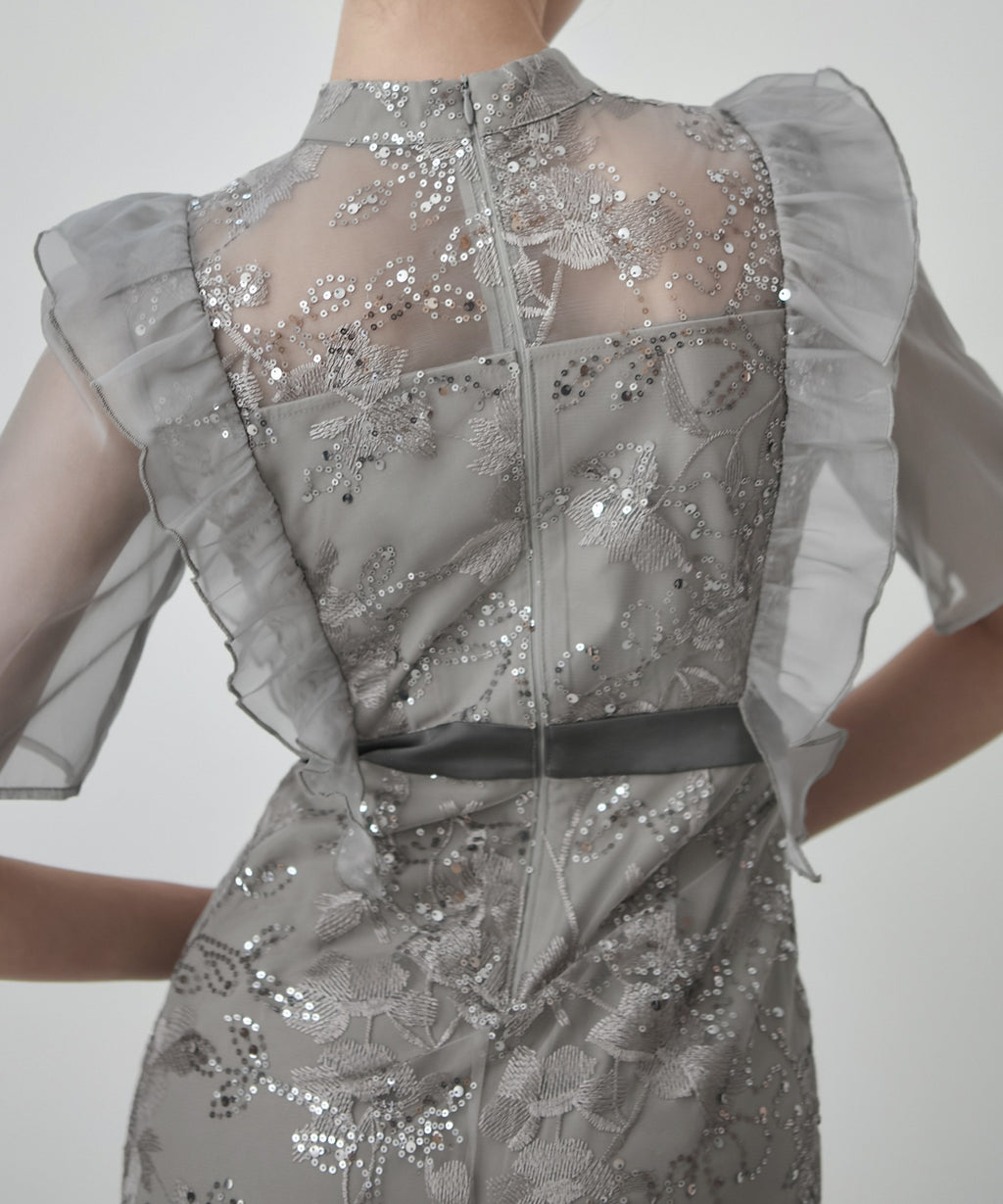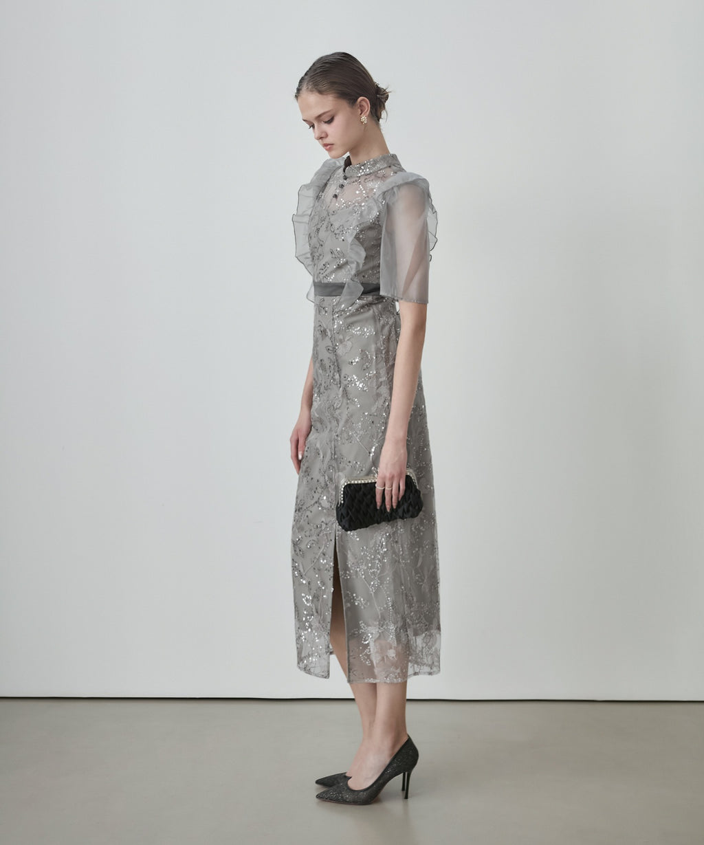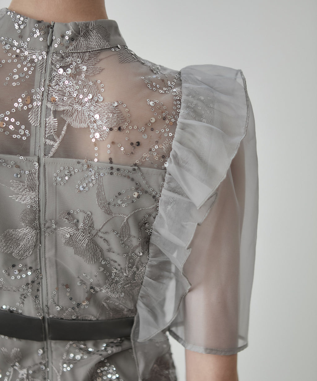 休閒 Leja 花朵亮片雪紡荷葉邊I字裙連衣裙美腿效果婚禮 派對禮服 成人禮 二次聚會 同學會 受邀場合 20代 30代 40代