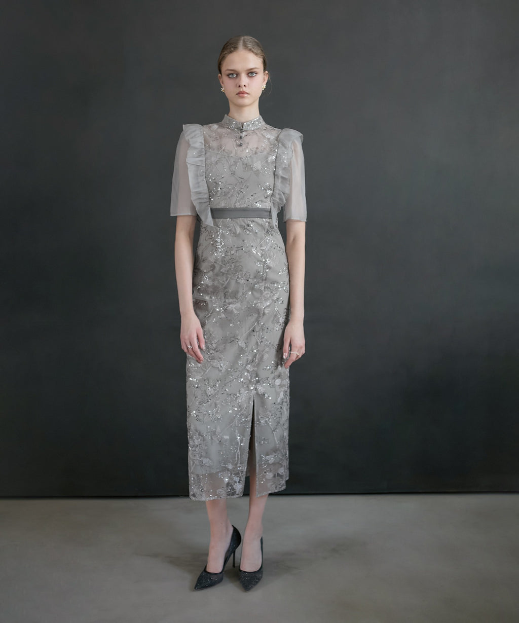 裙子的前側開衩展現腳部的美麗,營造出優雅的空氣感。