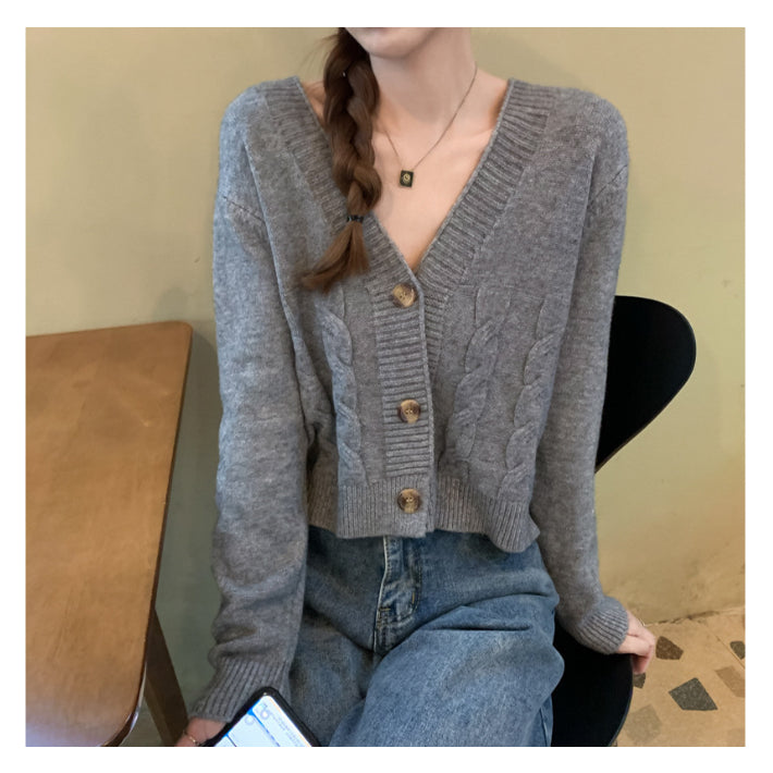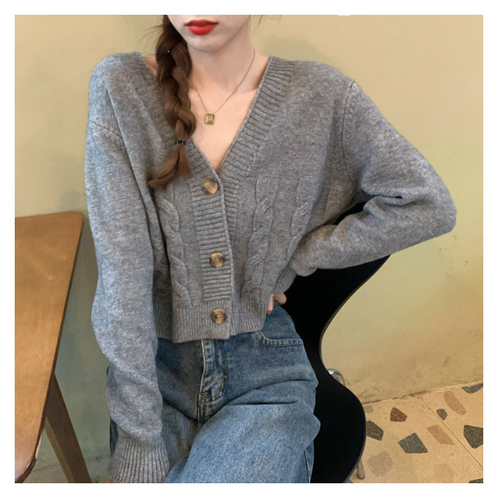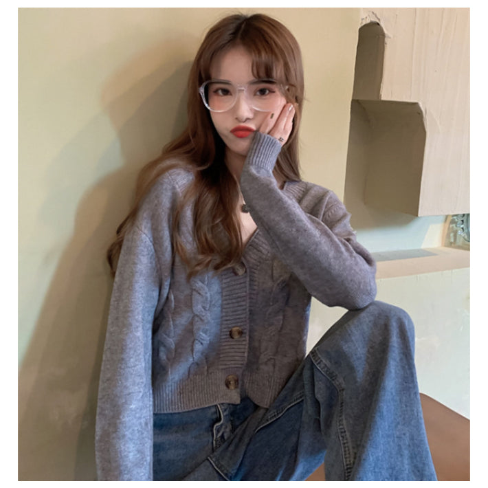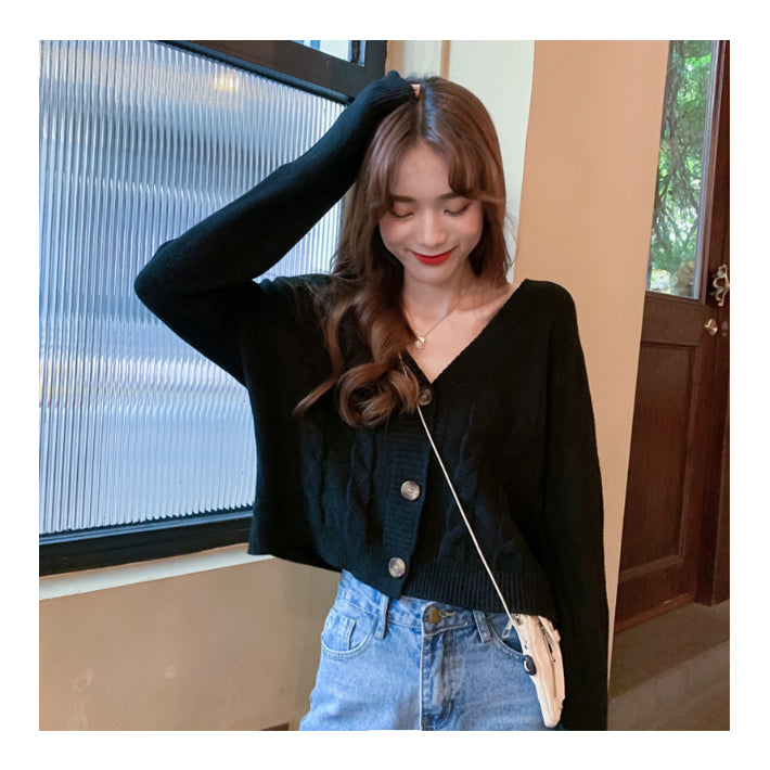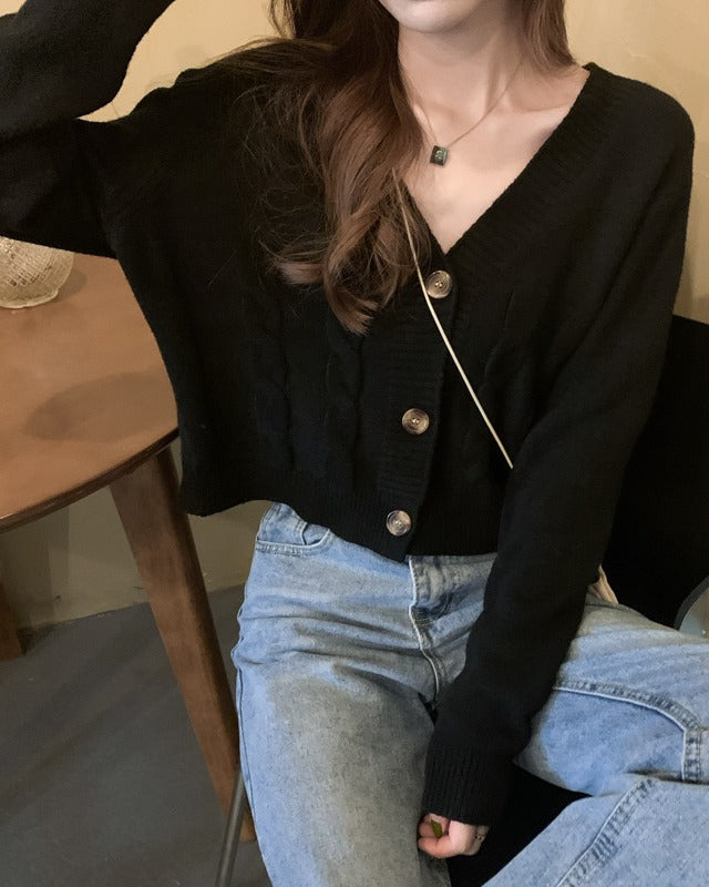 an another angelus 【可洗】玫瑰刺繡羅紋針織開衫