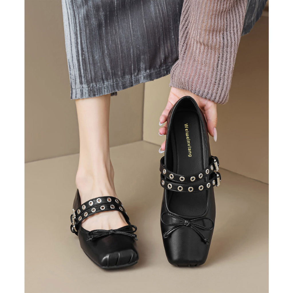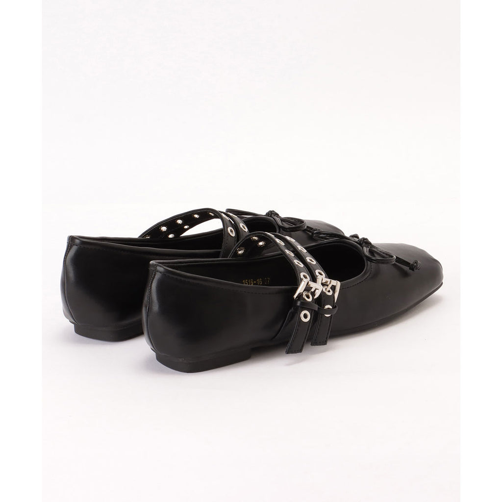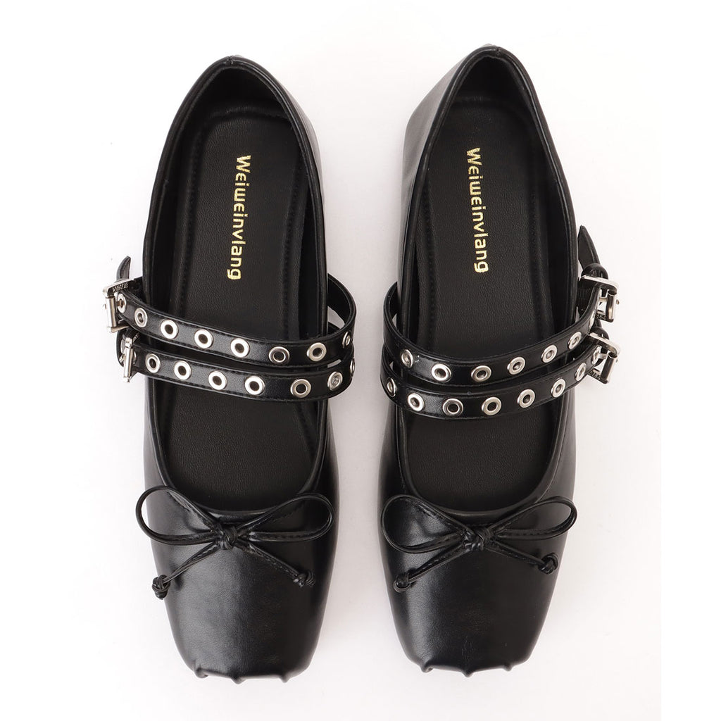 レースレディース Lace Ladies 方頭 鉚釘 腰帶 平底 蝴蝶結 包鞋