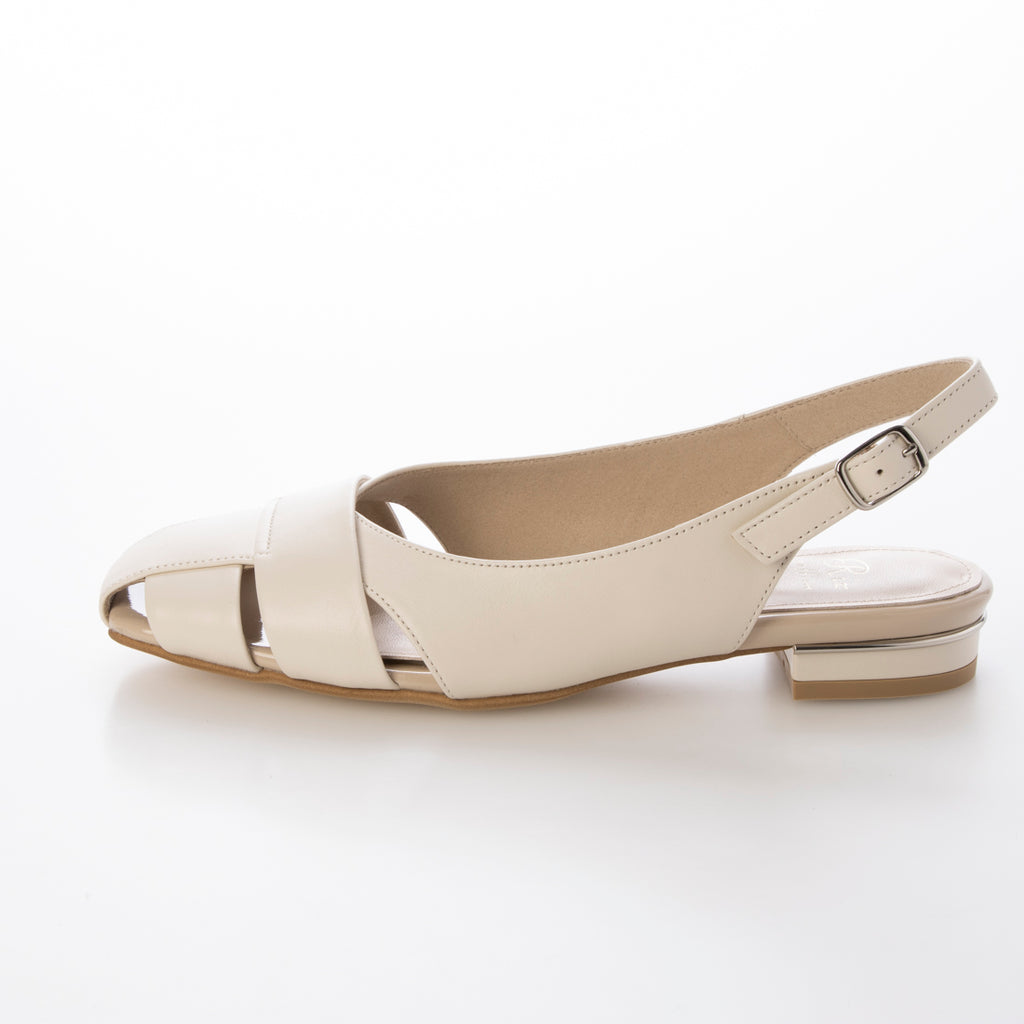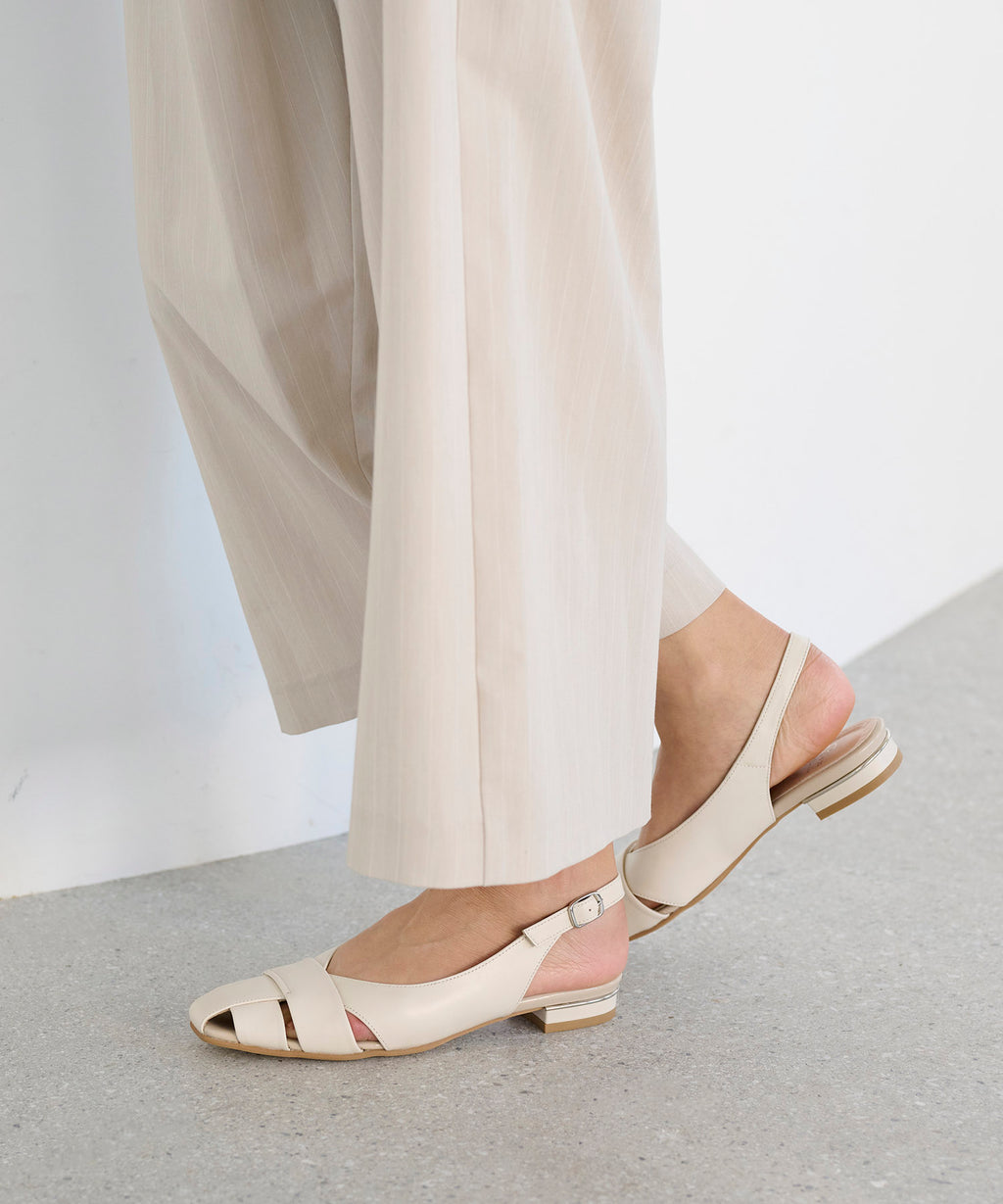 鞋跟部分埋入的金屬裝飾展現出整潔感和隨性感。