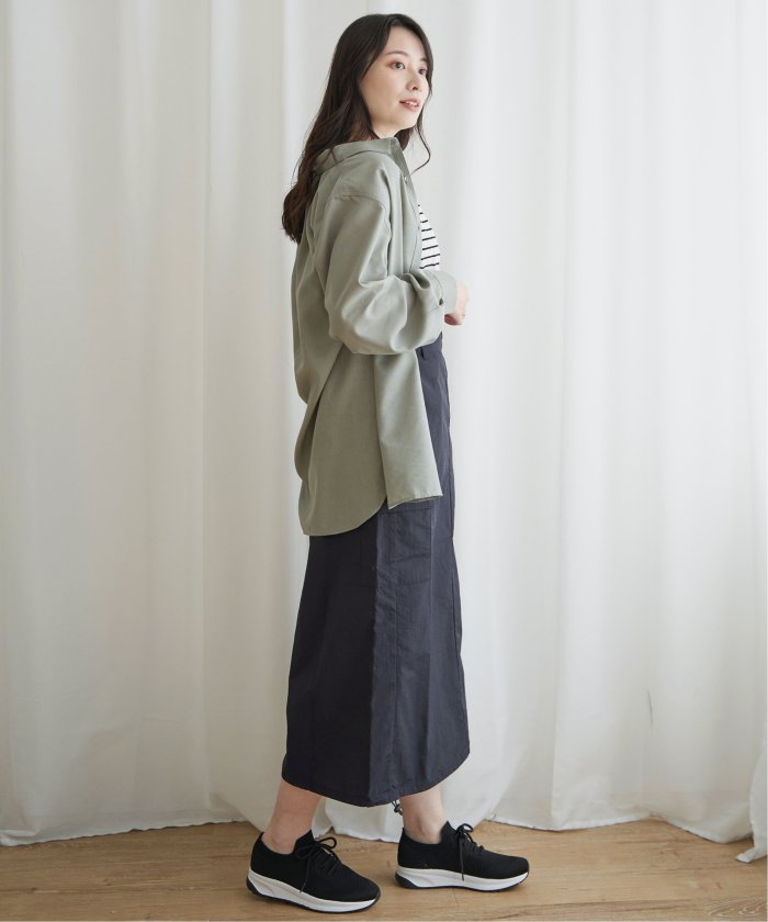 下擺採用較深的開衩設計,即使將前擺塞入也能整齊搭配。