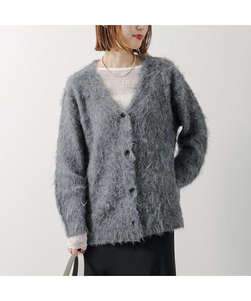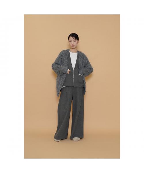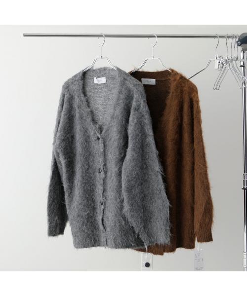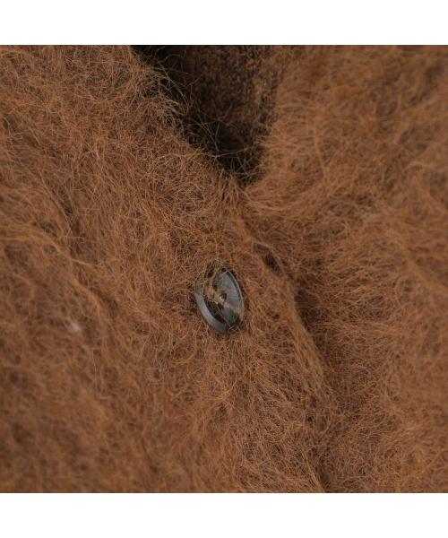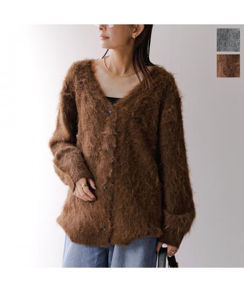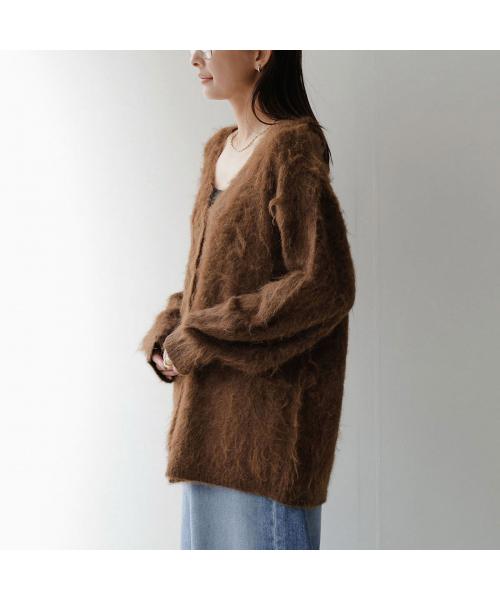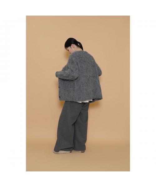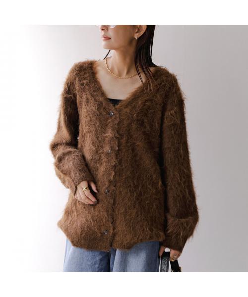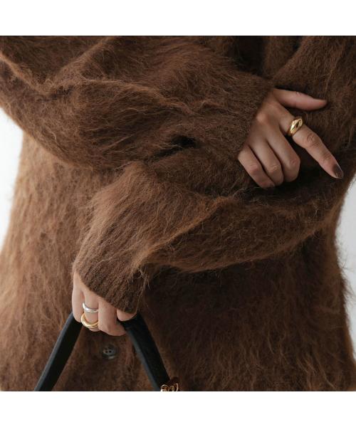 採用長毛且柔軟的シャギー素材製成的針織開襟毛衣。