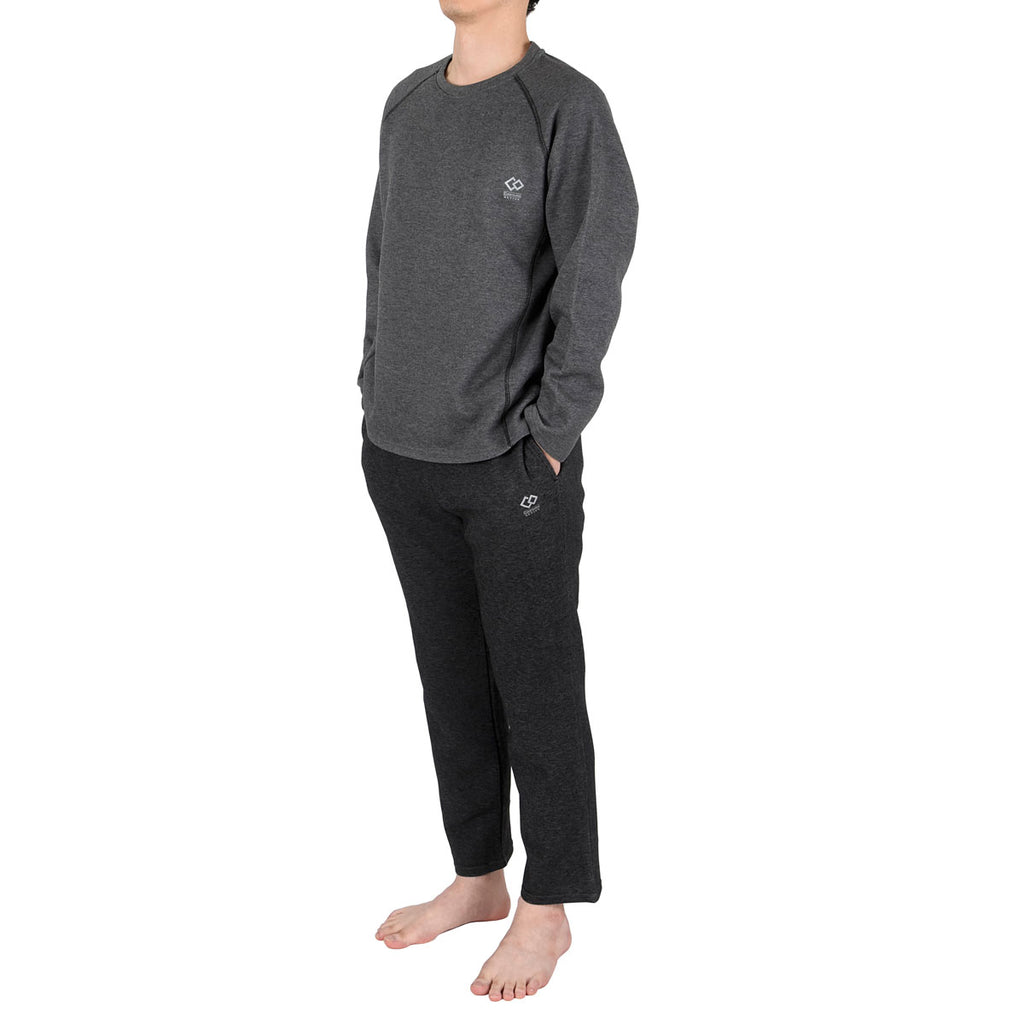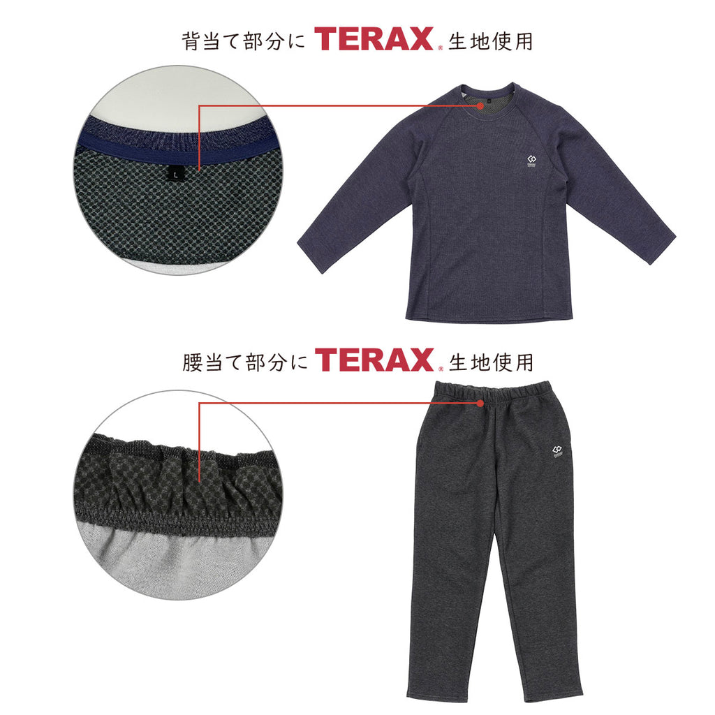 在上衣背襯和褲子腰部使用加入天然礦石的能量石布料,能夠藉由能量石的效果保持溫暖,支持放鬆和舒適。