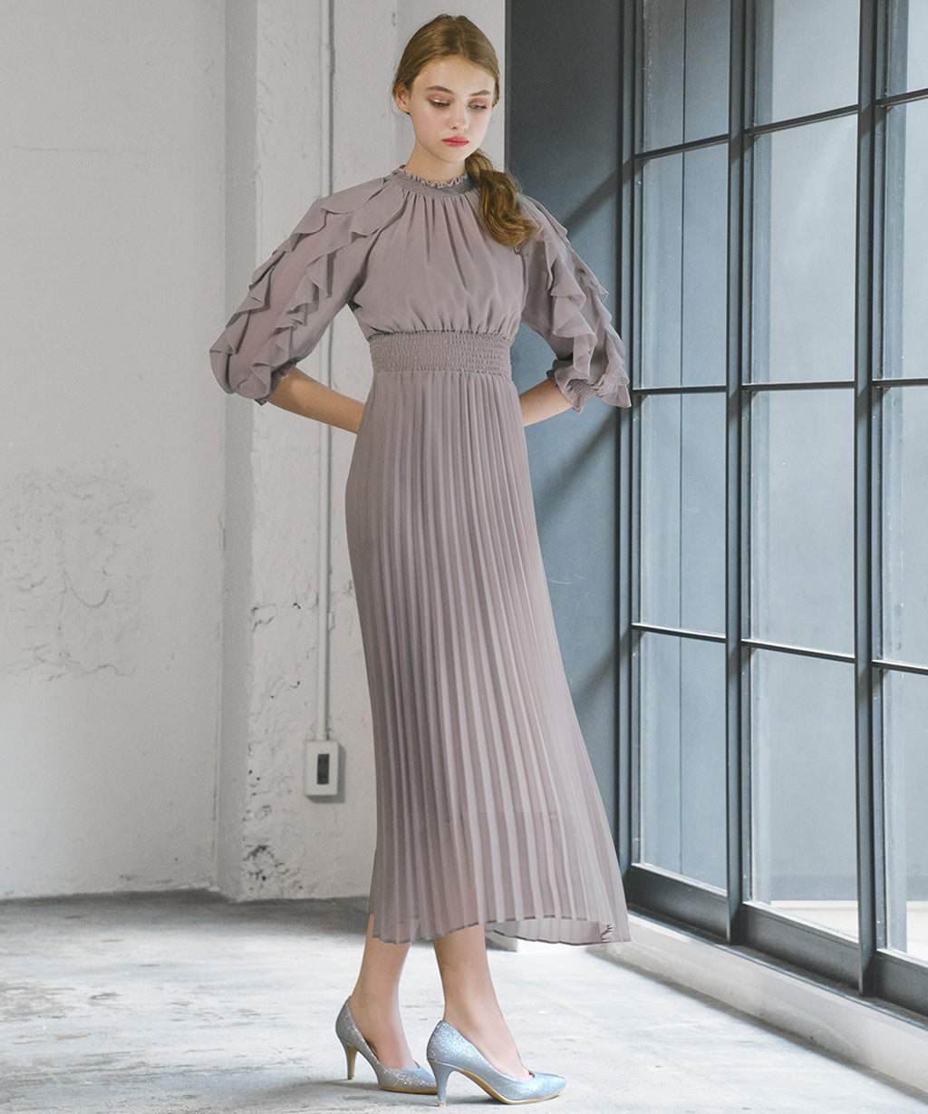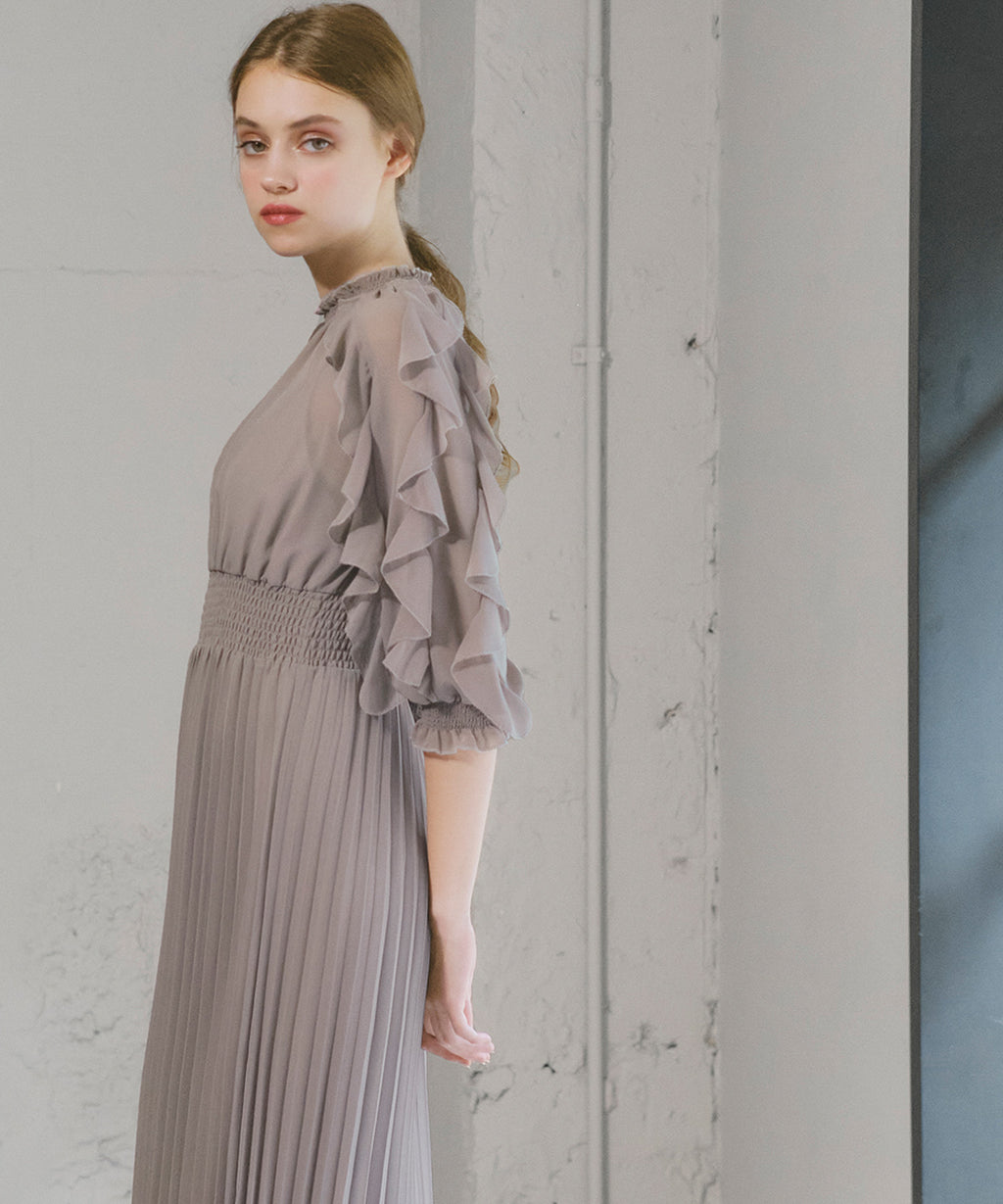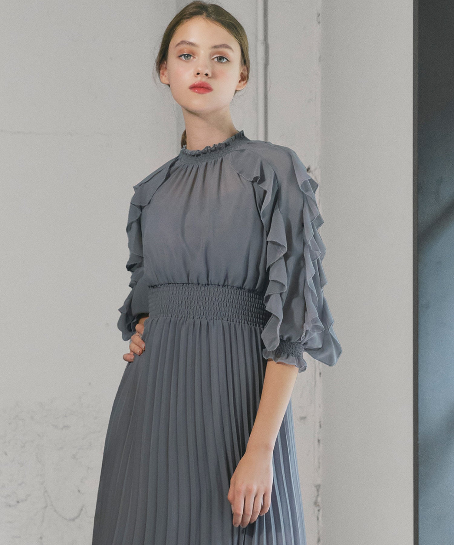 稍微高一些的領口,搖曳的百褶裙帶來古典的印象。