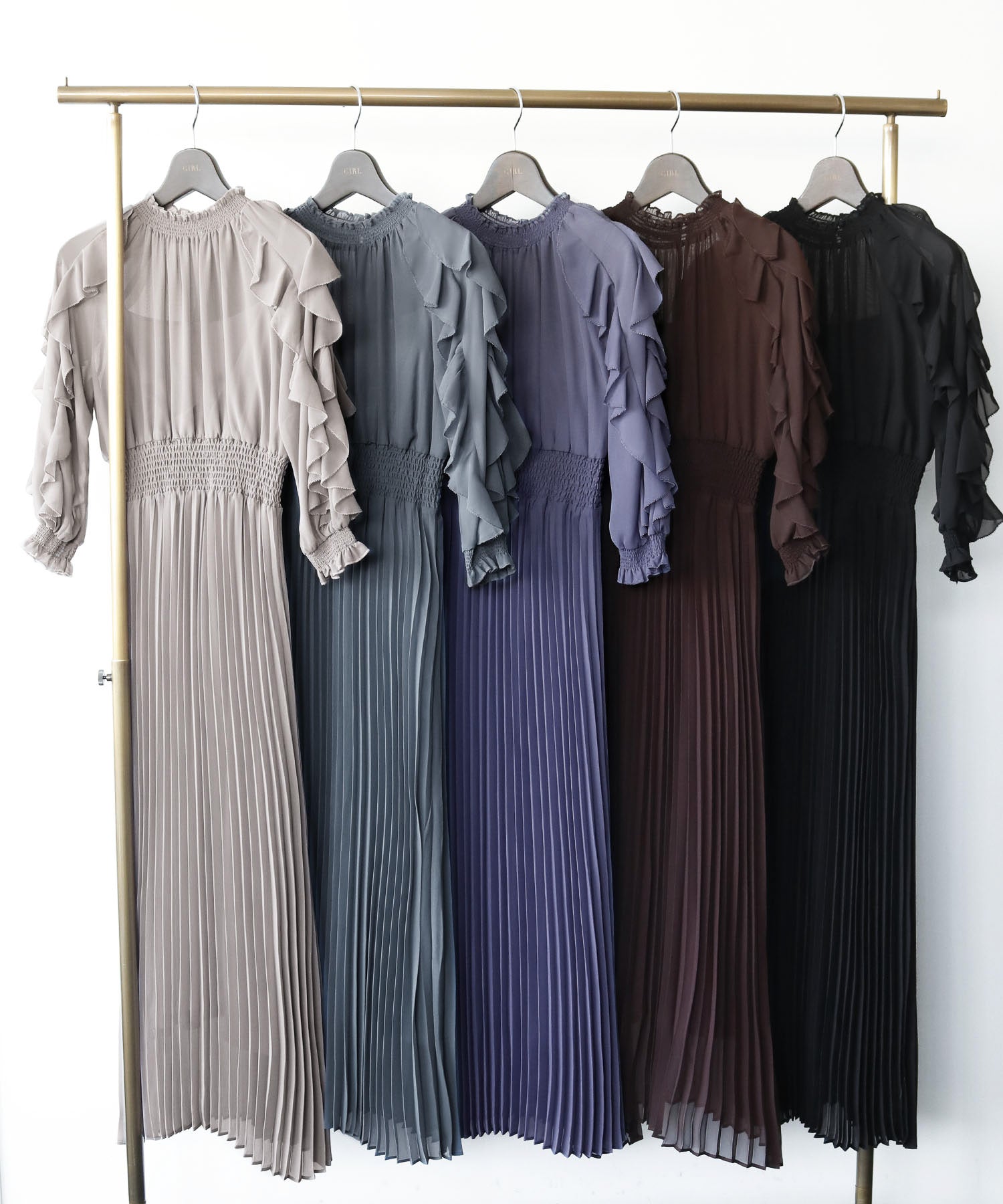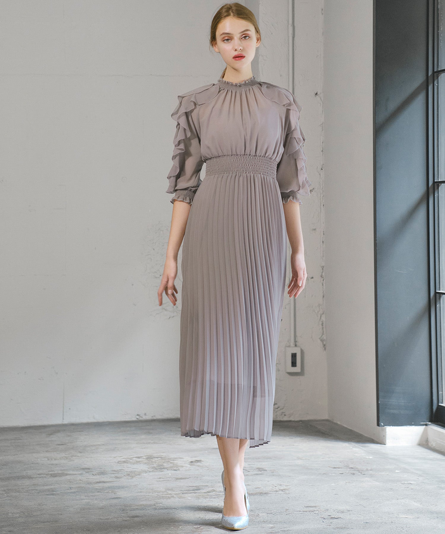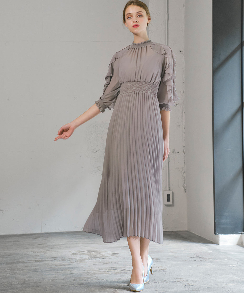 稍微高一些的領口,搖曳的百褶裙帶來古典的印象。