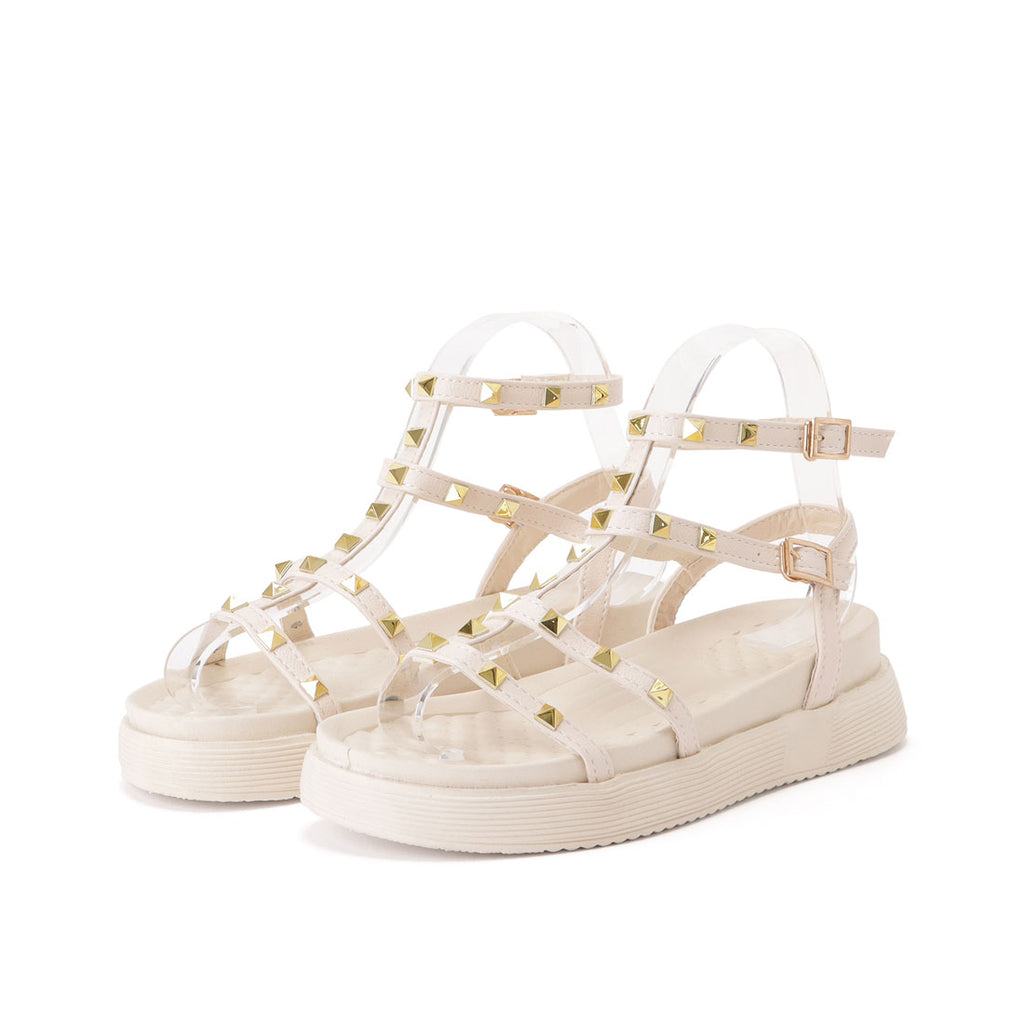 女用蕾絲透明鞋跟帶飾釘涼鞋