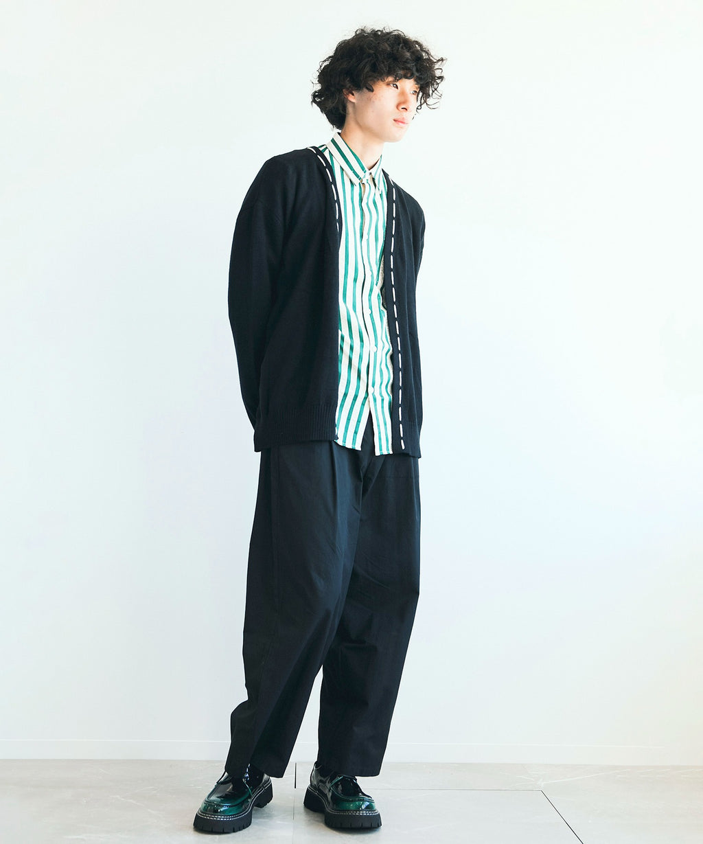 使用18號雙撚線製作了柔軟、細緻的織物。外觀和觸感都非常柔軟,是一件舒適的穿著體驗的單品。
