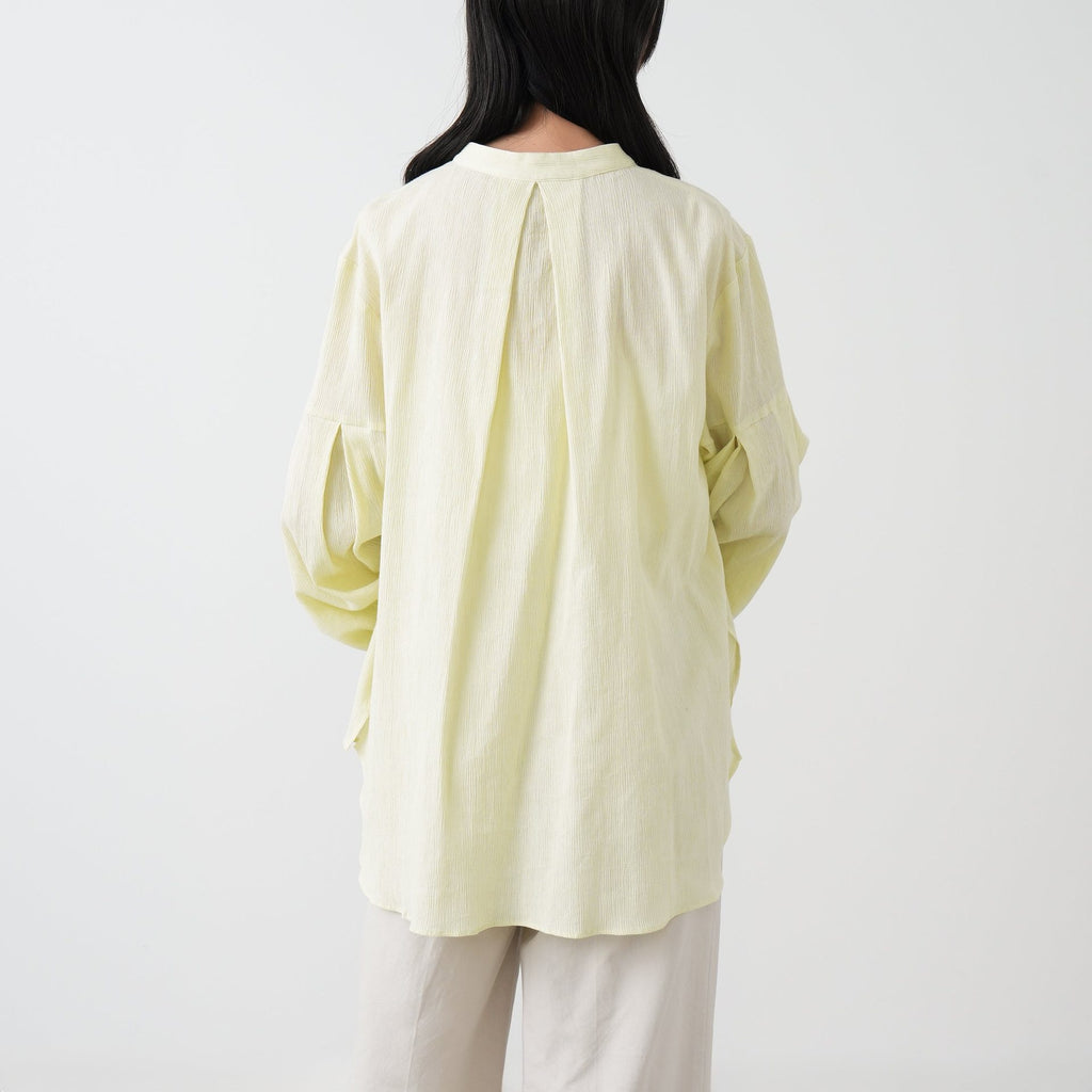 綿的皺褶材質,所以不必擔心皺褶,可以隨意穿著,作為夏季冷氣對策的外套也非常實用的襯衫。