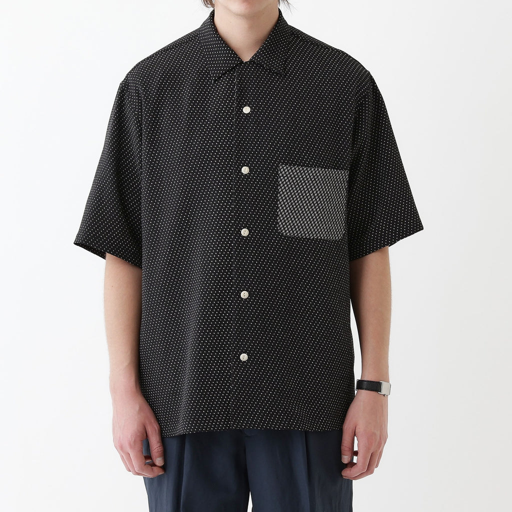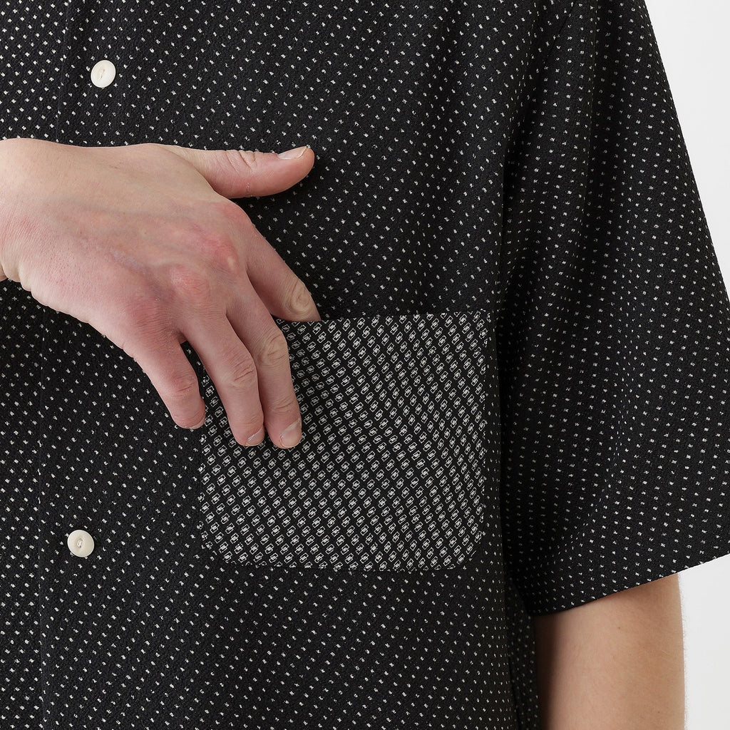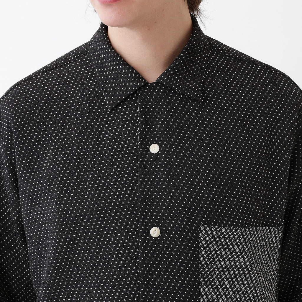 採用擁有100年以上歷史的京都老字號紡織廠的丹後縮緊材料製作的開襟襯衫。