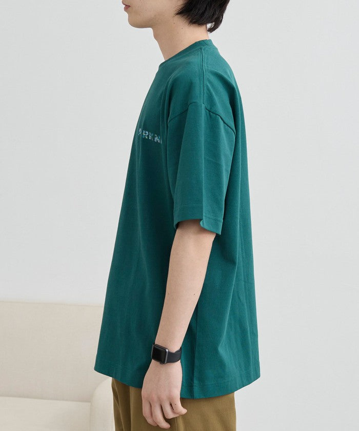 左胸上印有花卉圖案的標誌,令人印象深刻,簡約的T恤。