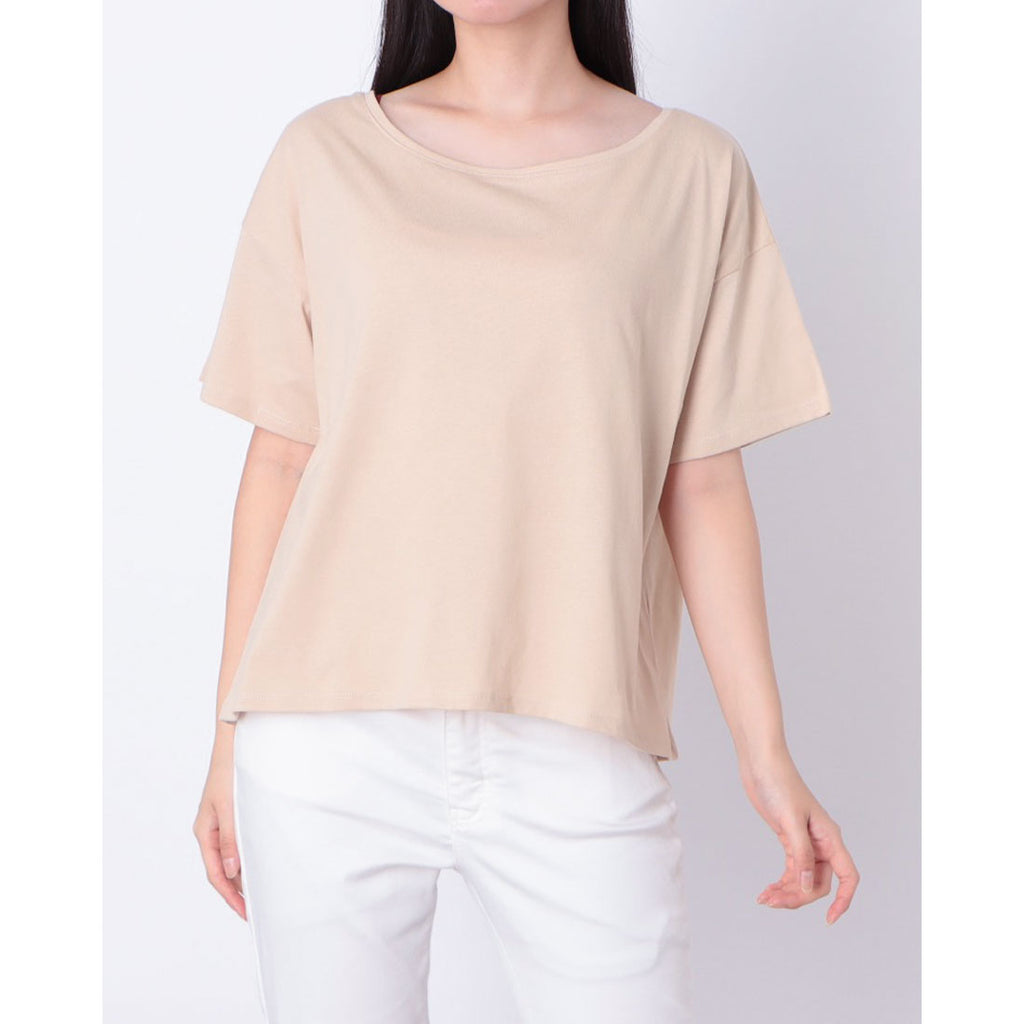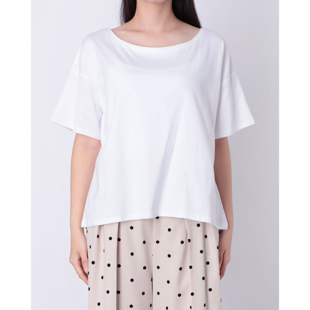 這款簡約純色T恤,短款設計,即使不塞進去也能穿得乾淨俐落,展現成熟可愛的風格。