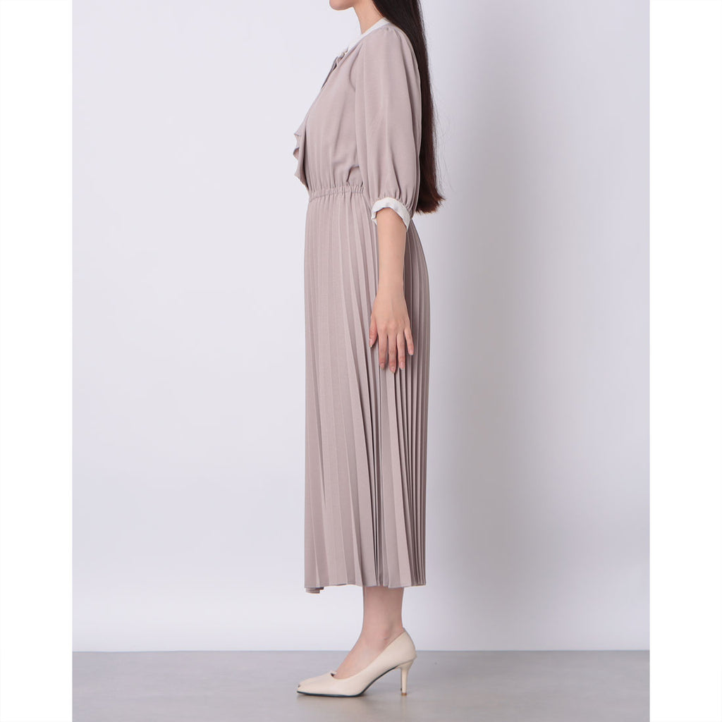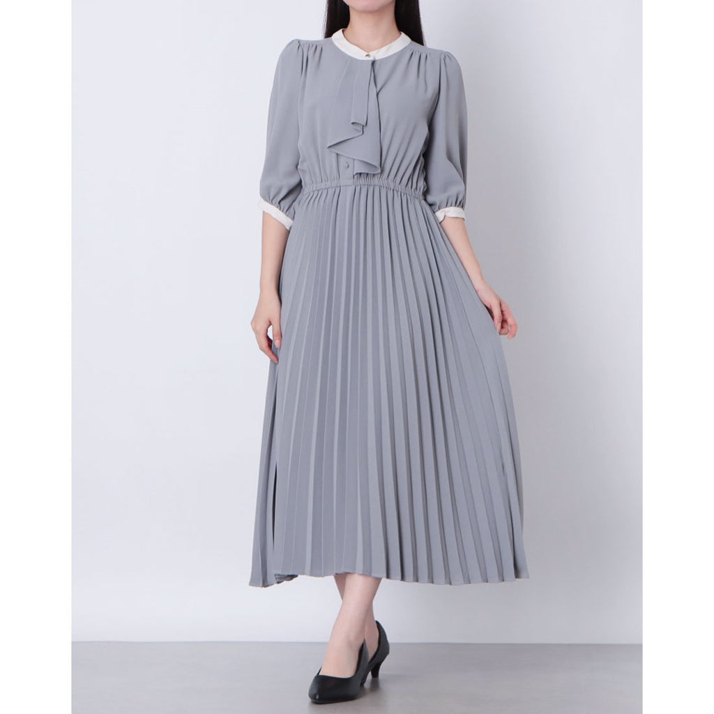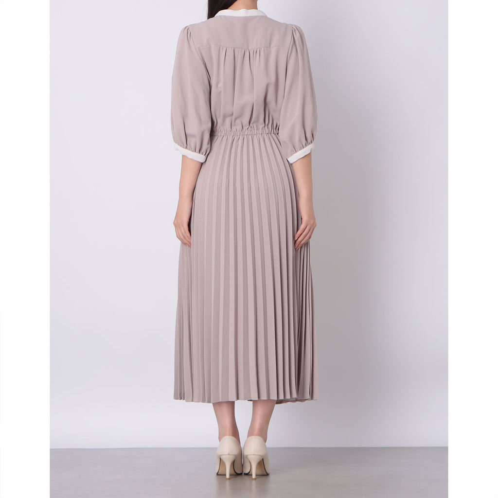 頸部周圍的優雅配色為整體增添了收緊效果,不會過於甜膩,展現出成熟可愛且優雅的成熟女性風格的連衣裙。