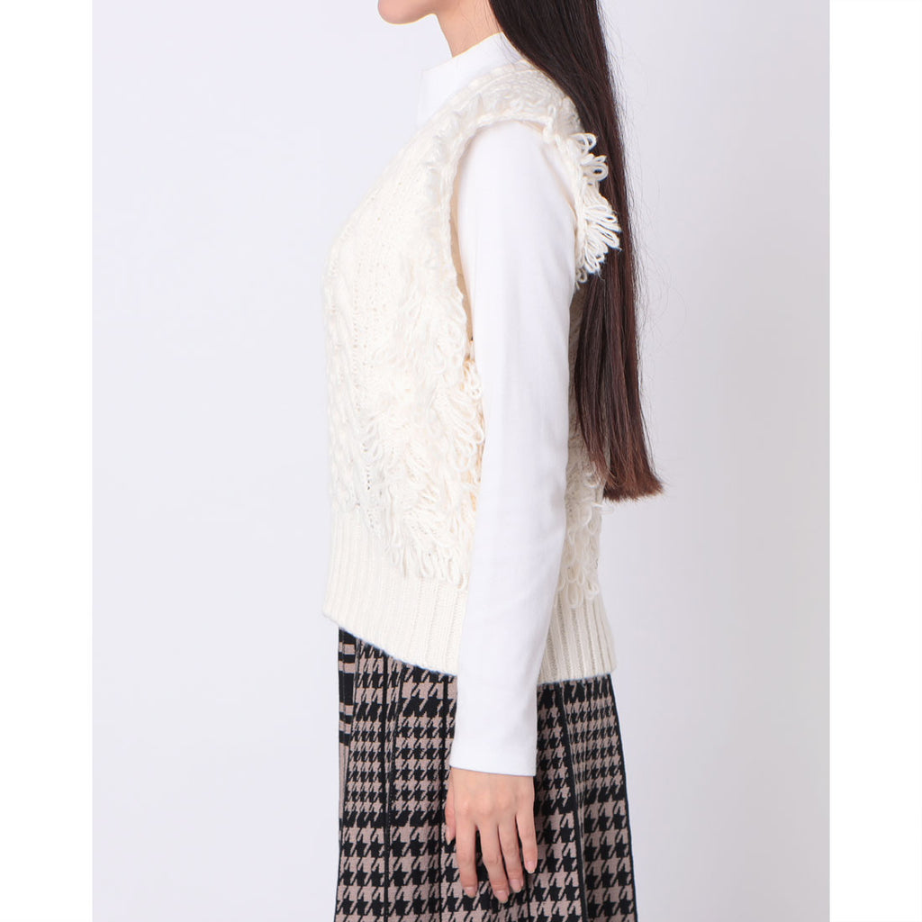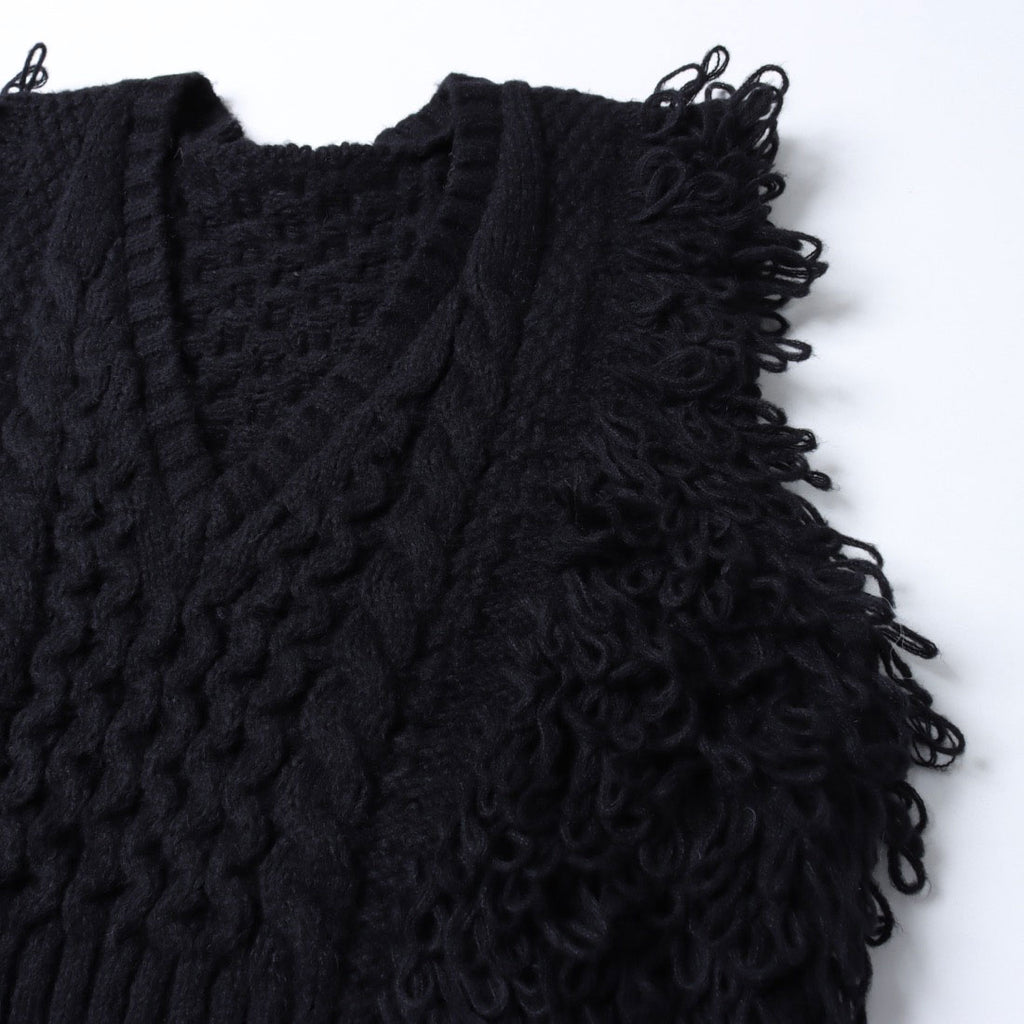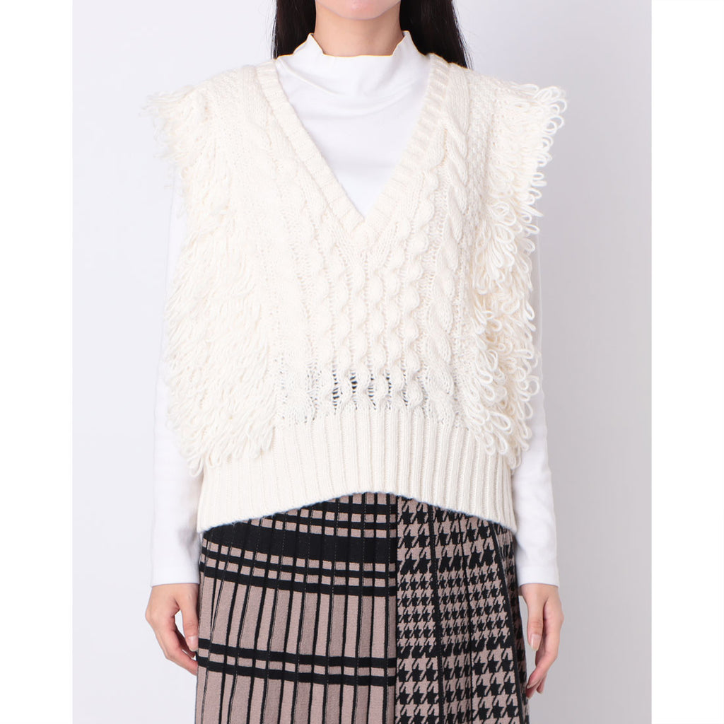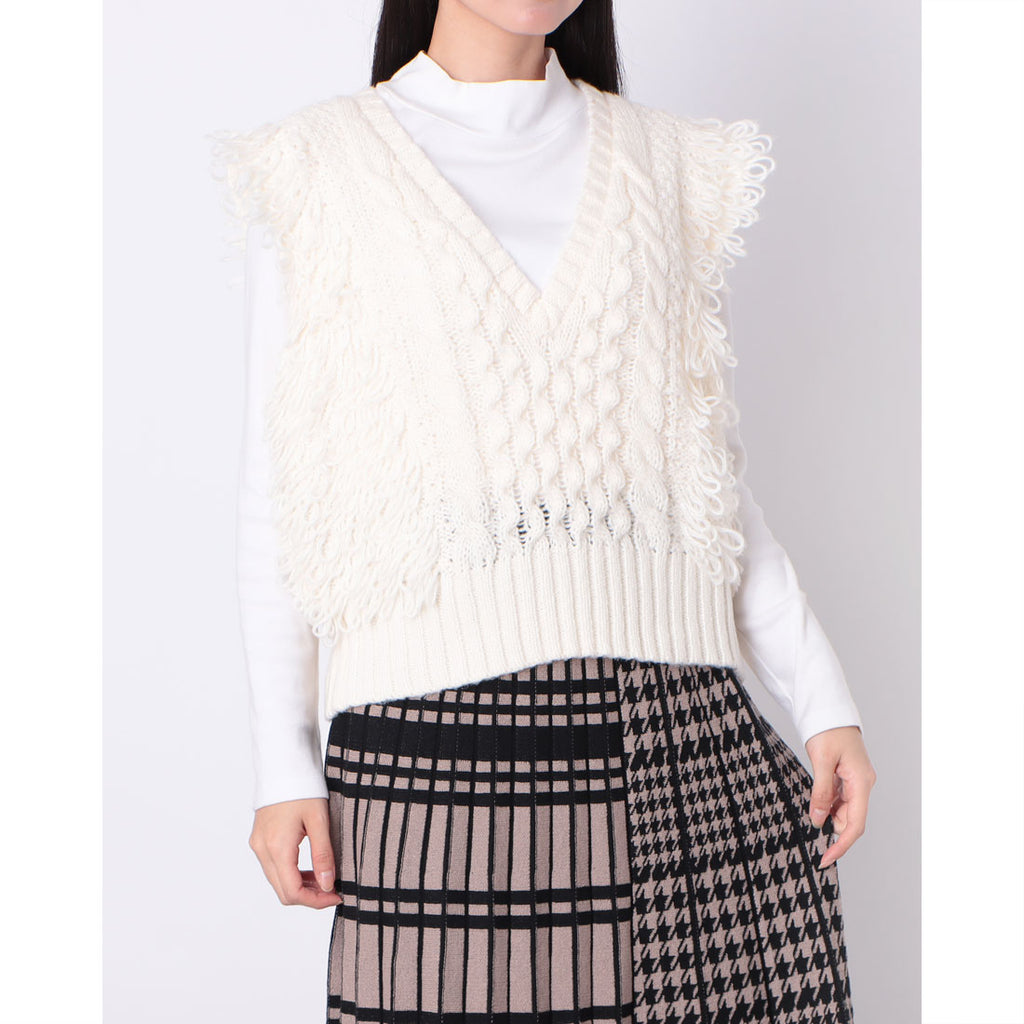 這款針織背心以主角級的電纜編織和流蘇設計提升整體造型感。