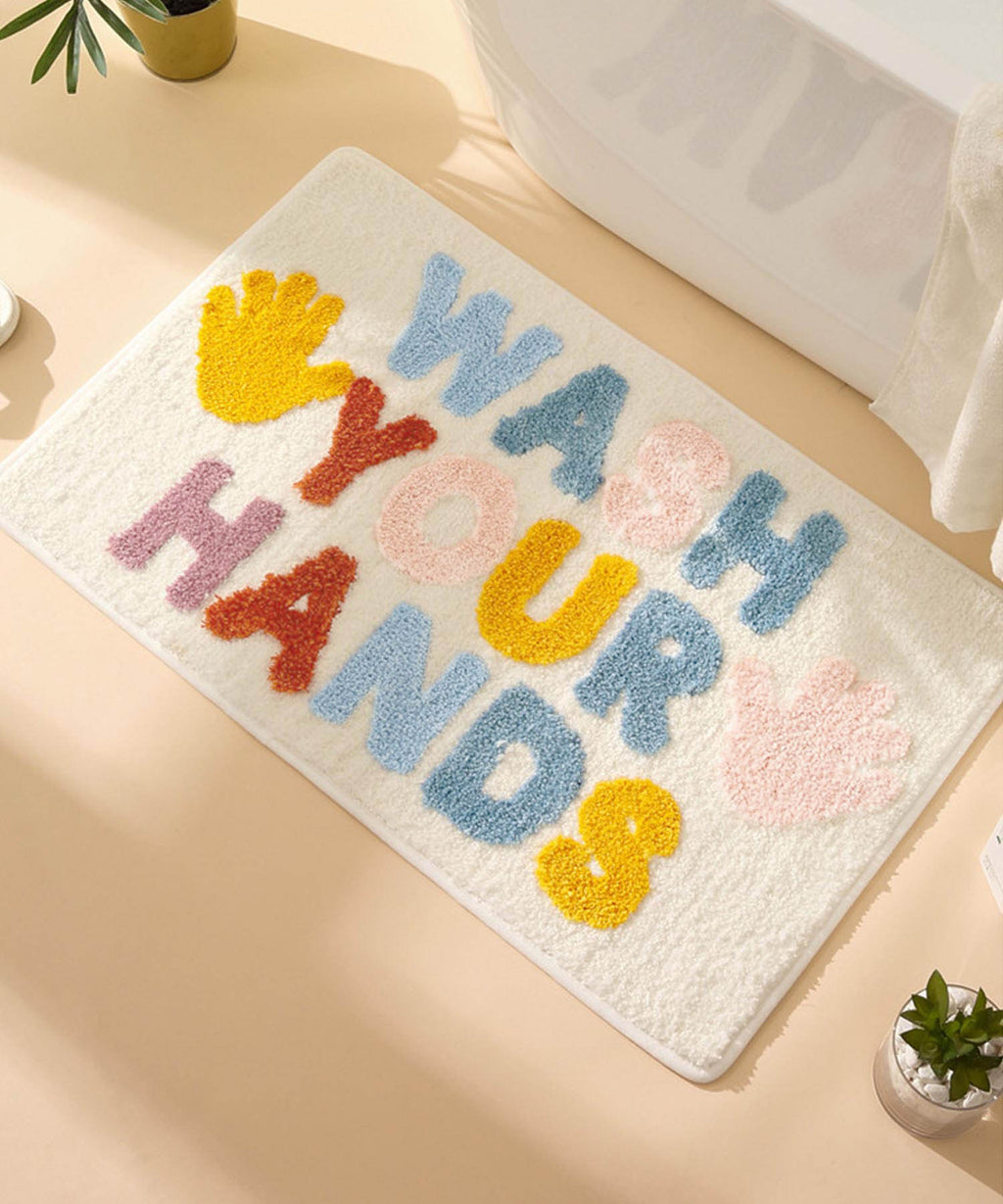完了後的浴室體驗將更加有趣,英文字母標誌的可愛彩色浴室墊。