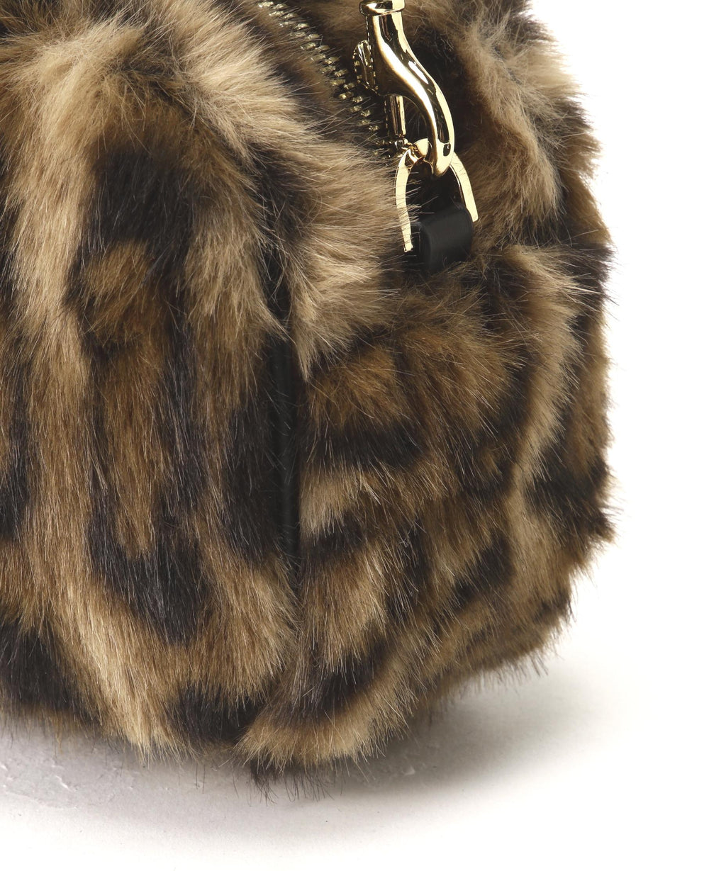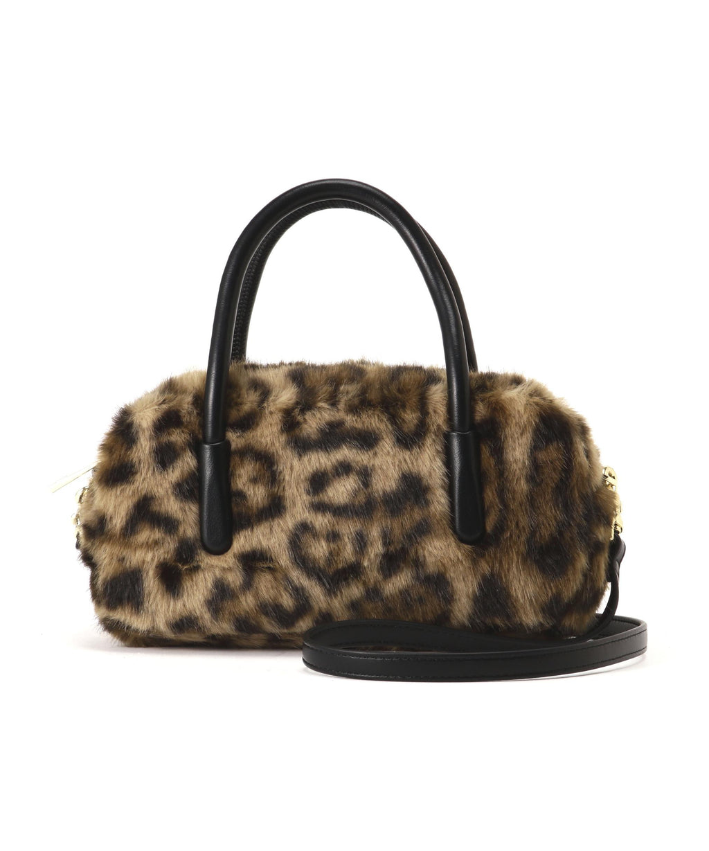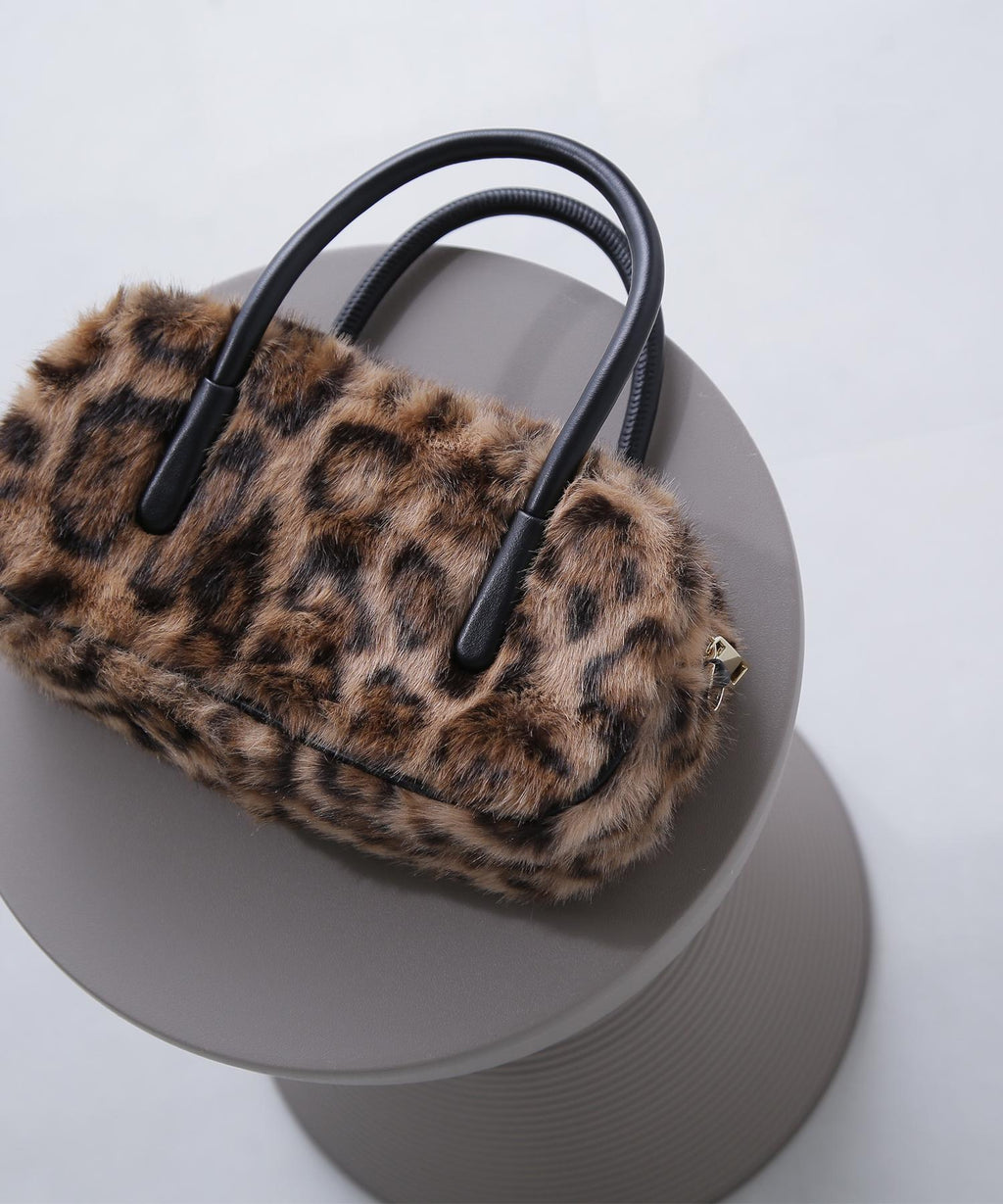 趨勢的橫長輪廓毛皮波士頓迷你包。雖然使用了柔軟的人造皮革毛皮,但結構堅固,能容納必需品。手柄是金屬感較少的柔軟人造皮革圓形繩,因此不易在手臂上留下壓痕。附帶的肩帶可以進行斜挎。今季趨勢的豹紋圖案和非傳統顏色的兩種顏色展開。