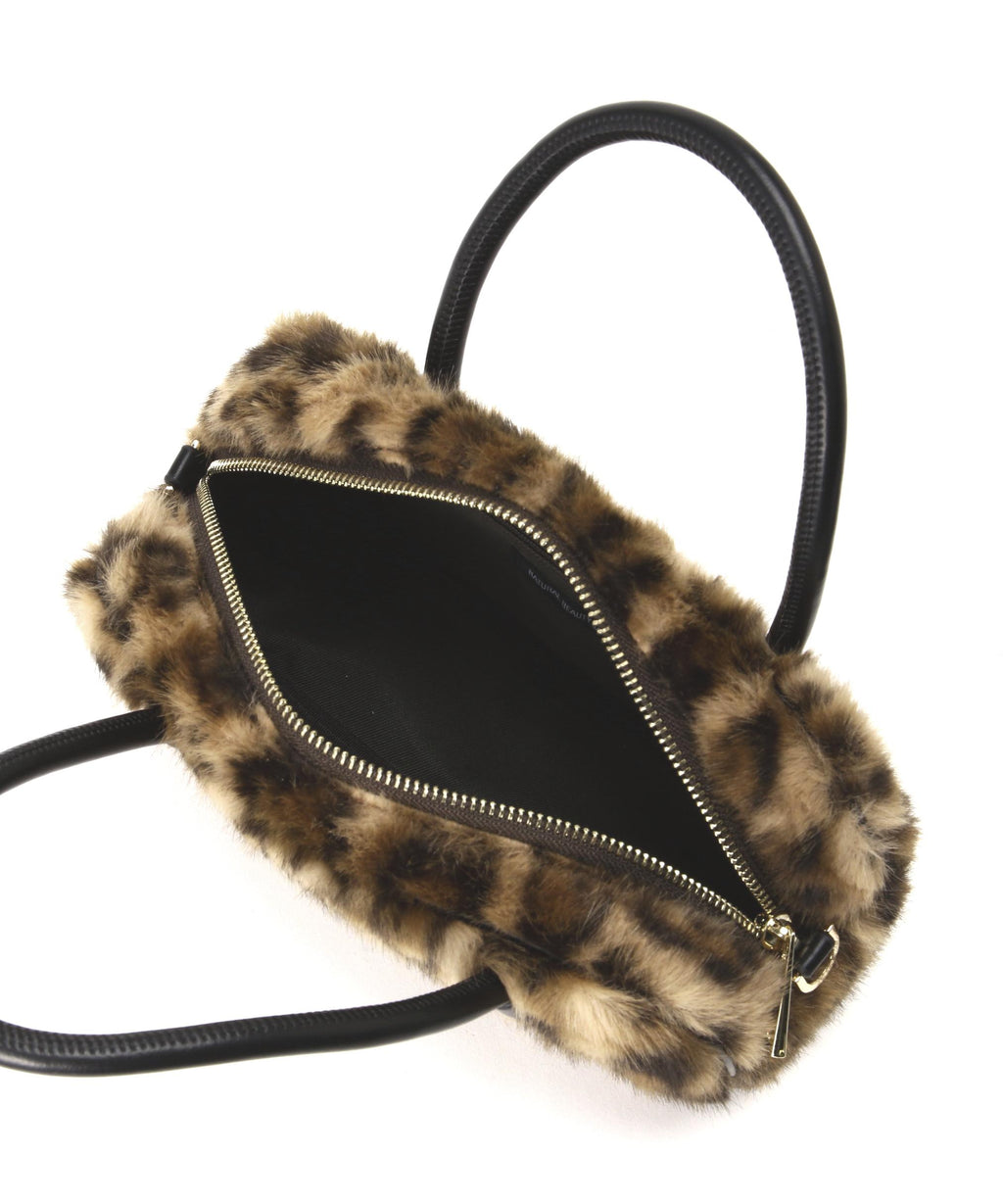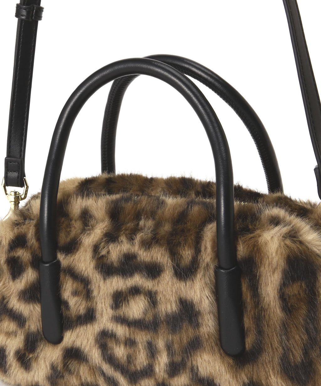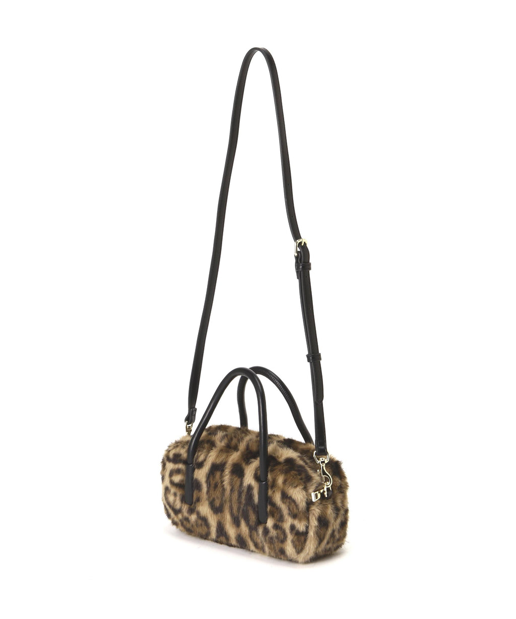 趨勢的橫長輪廓毛皮波士頓迷你包。雖然使用了柔軟的人造皮革毛皮,但結構堅固,能容納必需品。手柄是金屬感較少的柔軟人造皮革圓形繩,因此不易在手臂上留下壓痕。附帶的肩帶可以進行斜挎。今季趨勢的豹紋圖案和非傳統顏色的兩種顏色展開。