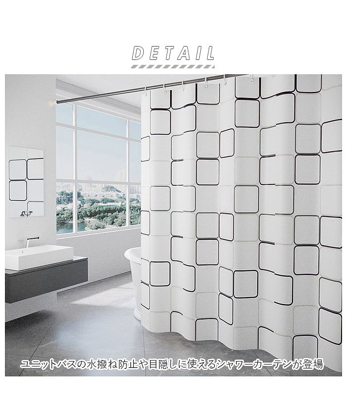 ユニットバスの水撥ね防止や目隠しに使えるシャワーカーテンが登場。