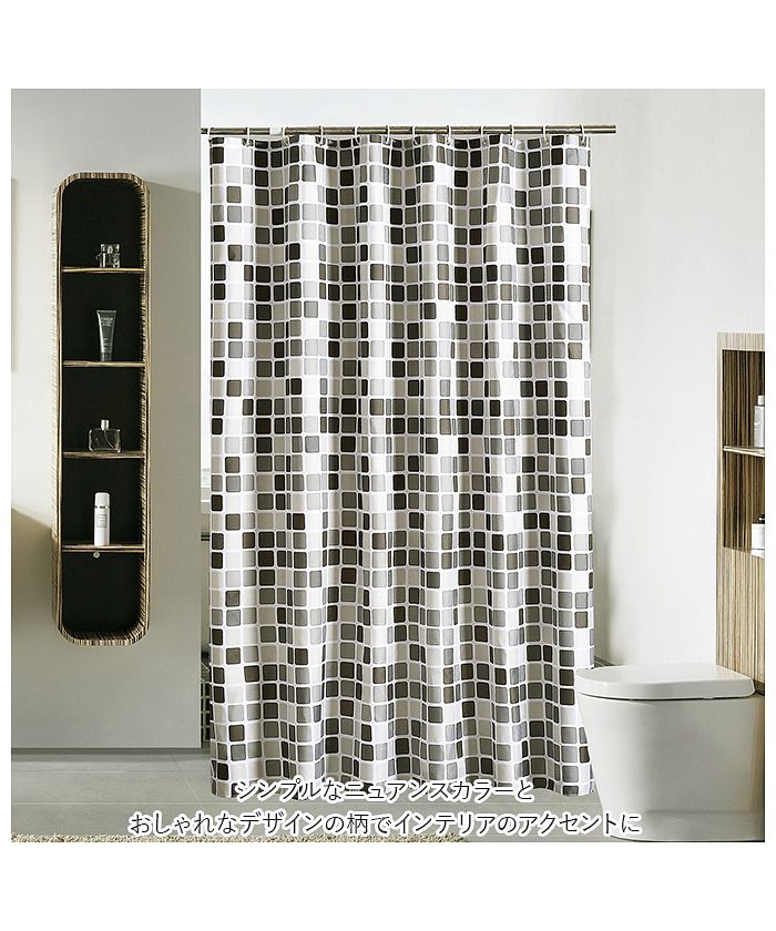ノーブランド NO BRAND シャワーカーテン 防カビ1枚 フック付き 保温カーテン 保温 カーテン 間仕切り 速乾 撥水 透けない 北欧風 取り付け 簡単 冷気遮断 通販お風呂 洗面所 チェック柄 シンプル 幾何パターン おしゃれ 水回り用品 バスグッズ