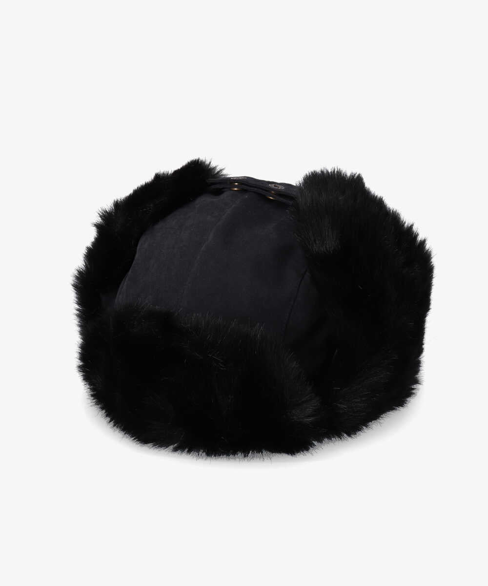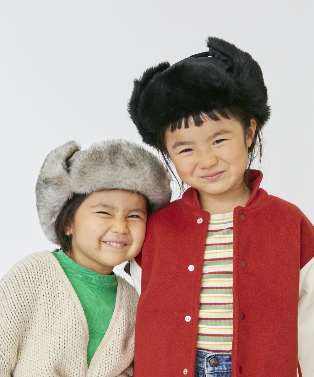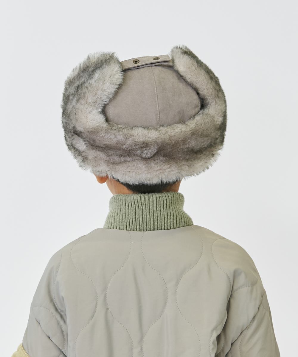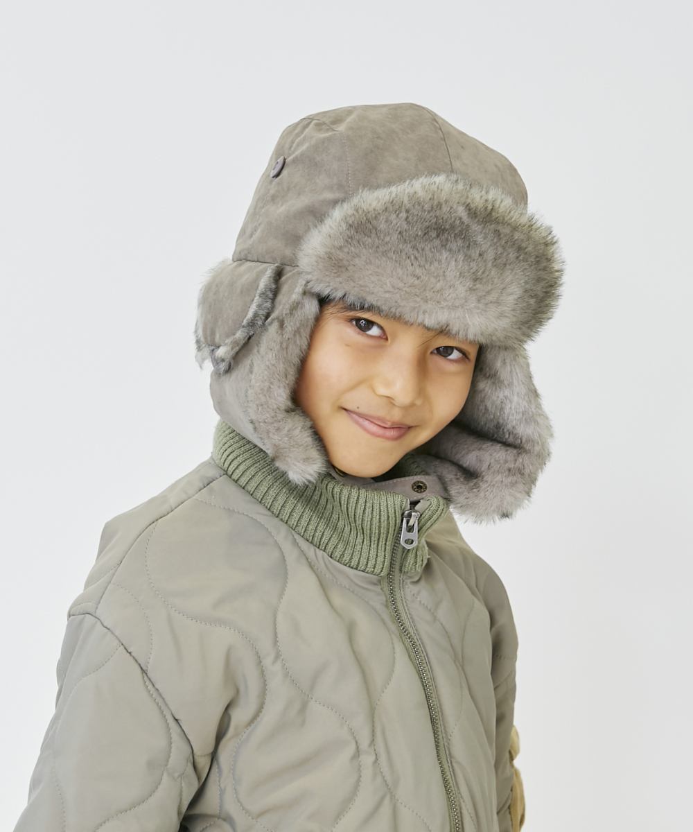 裏面採用絎縫加工。透過解開按扣並放下耳罩來穿著,可以有效保暖。也推薦在戶外或觀賞體育賽事時穿著。