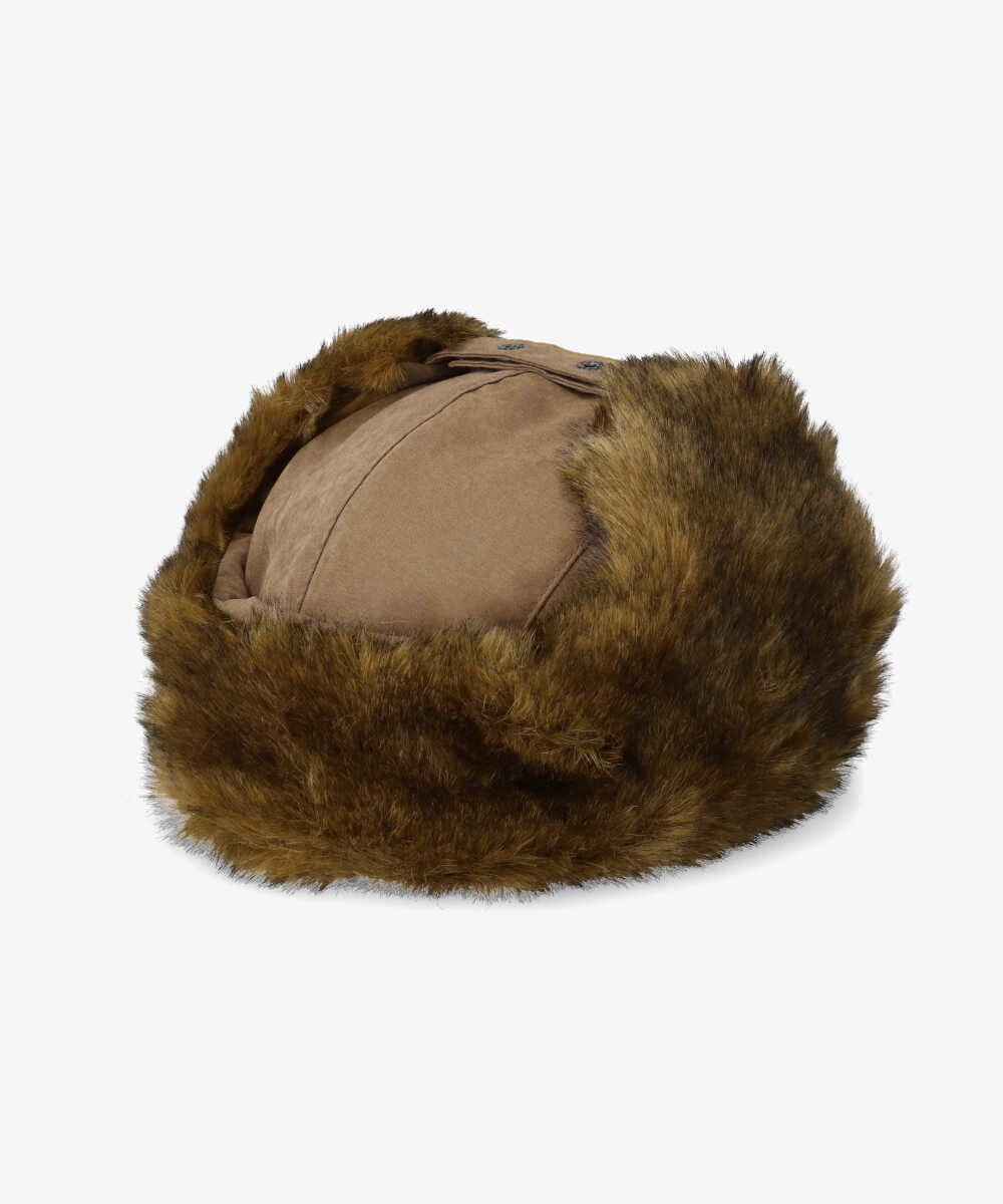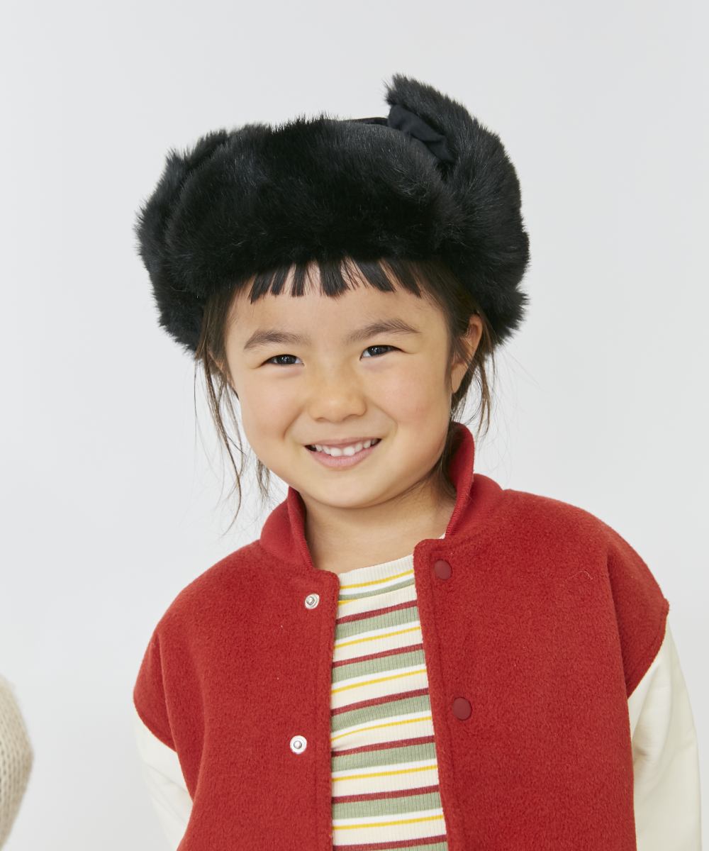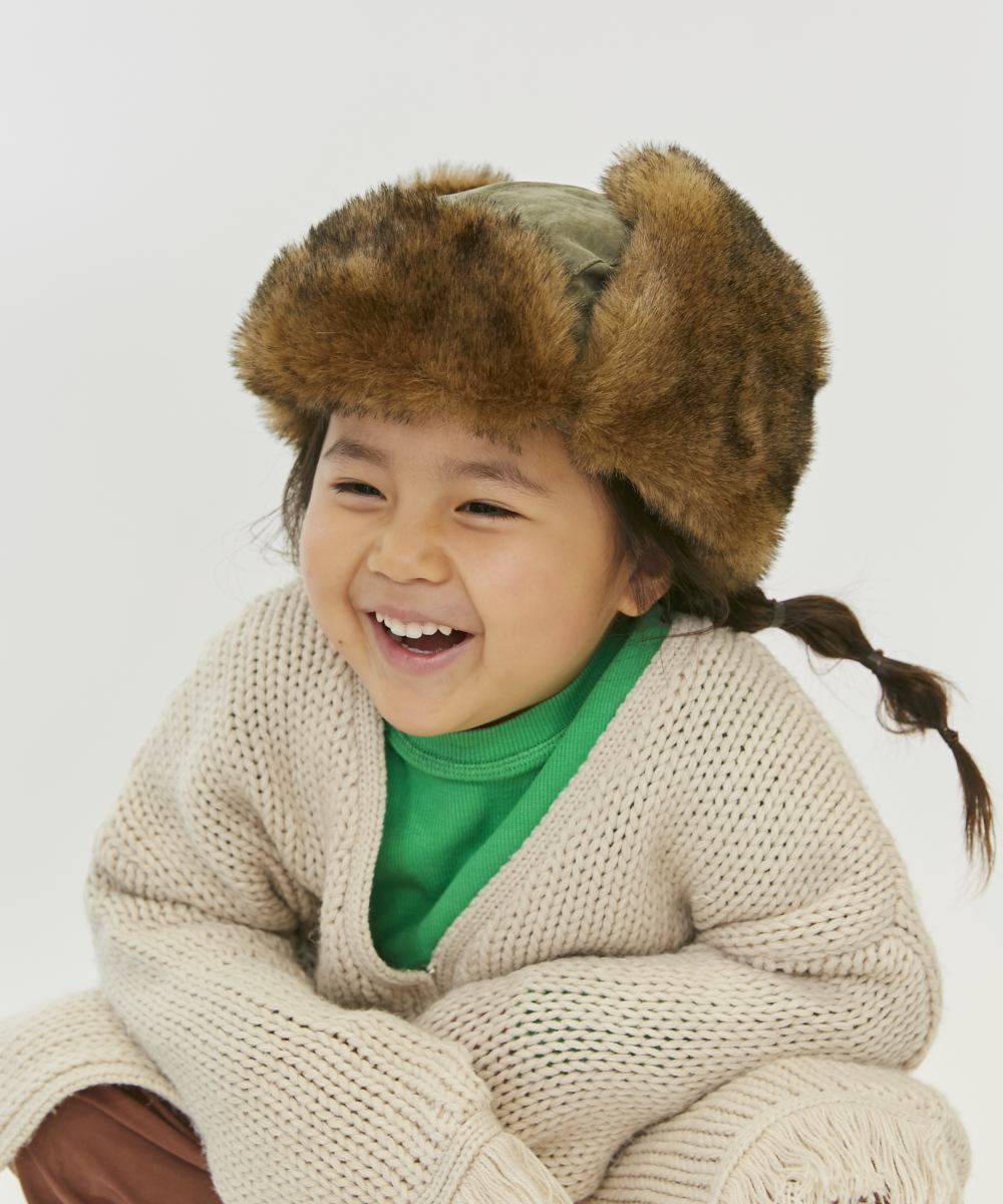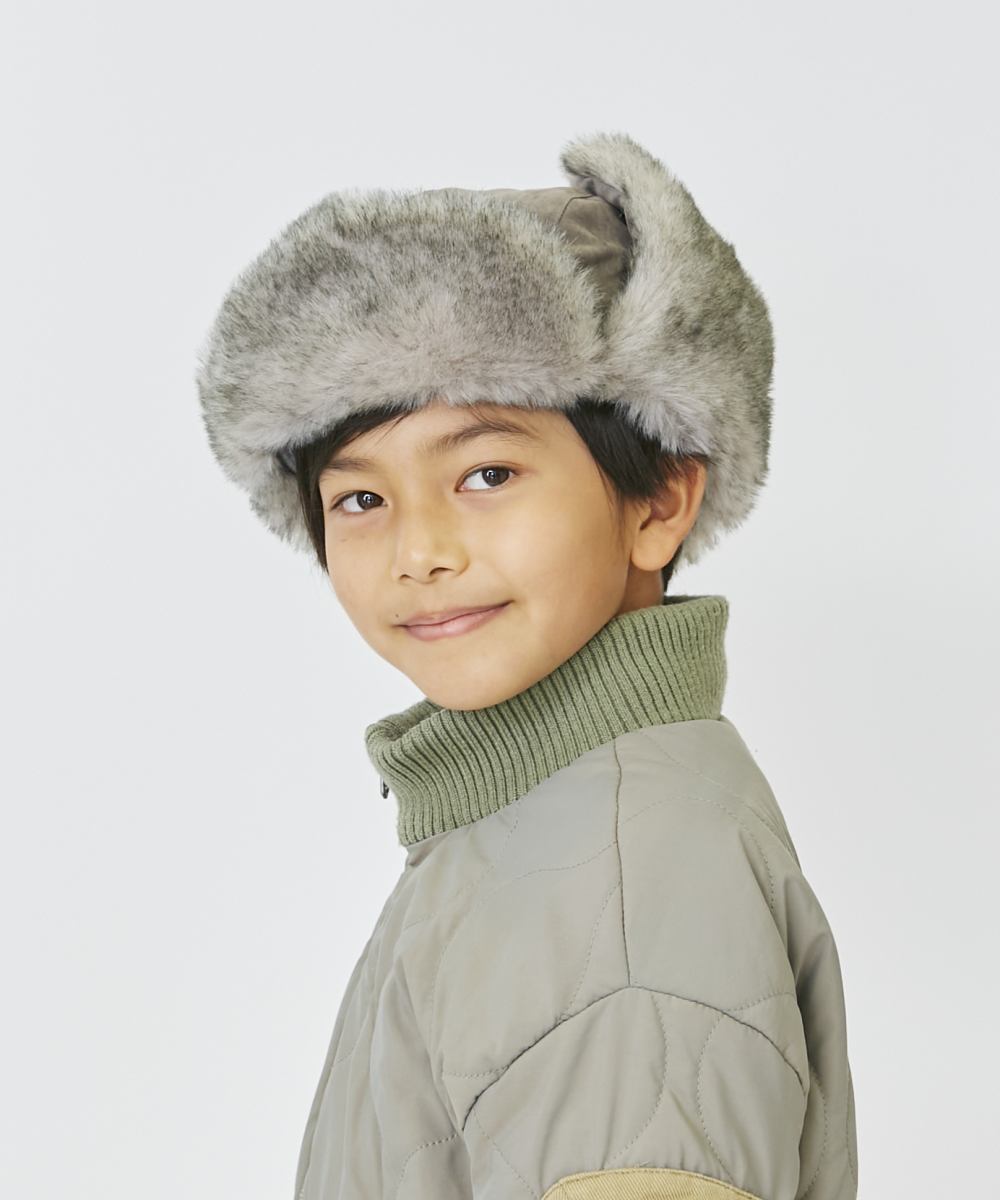 裏面採用絎縫加工。透過解開按扣並放下耳罩來穿著,可以有效保暖。也推薦在戶外或觀賞體育賽事時穿著。