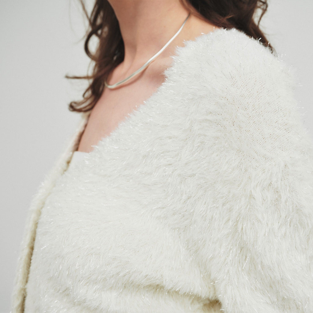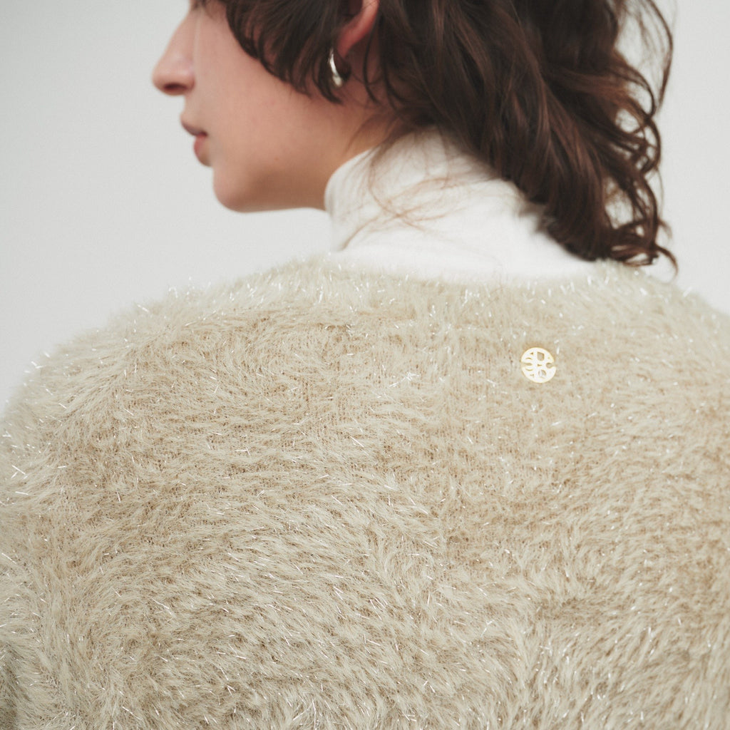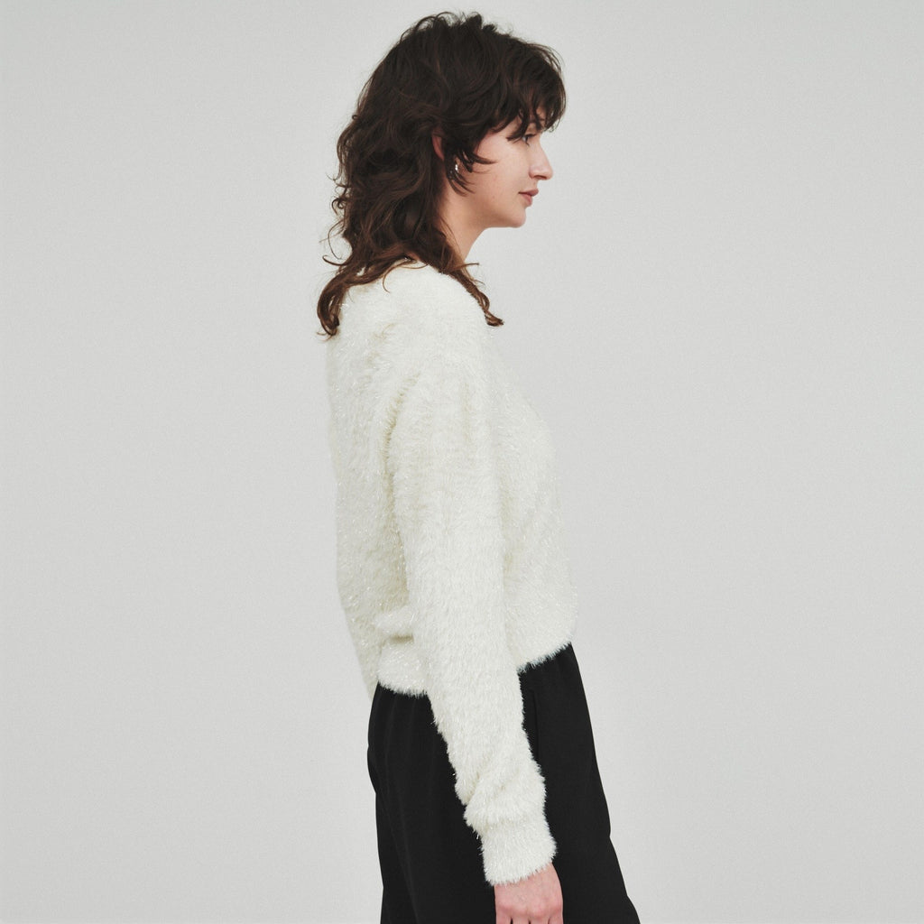 全體散布的銀色亮片是這款針織品的魅力所在。