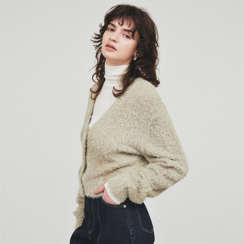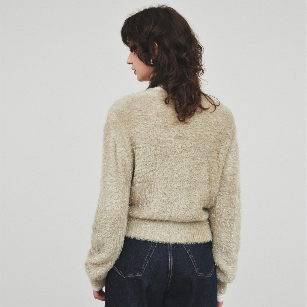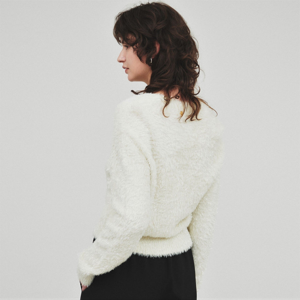 全體散布的銀色亮片是這款針織品的魅力所在。