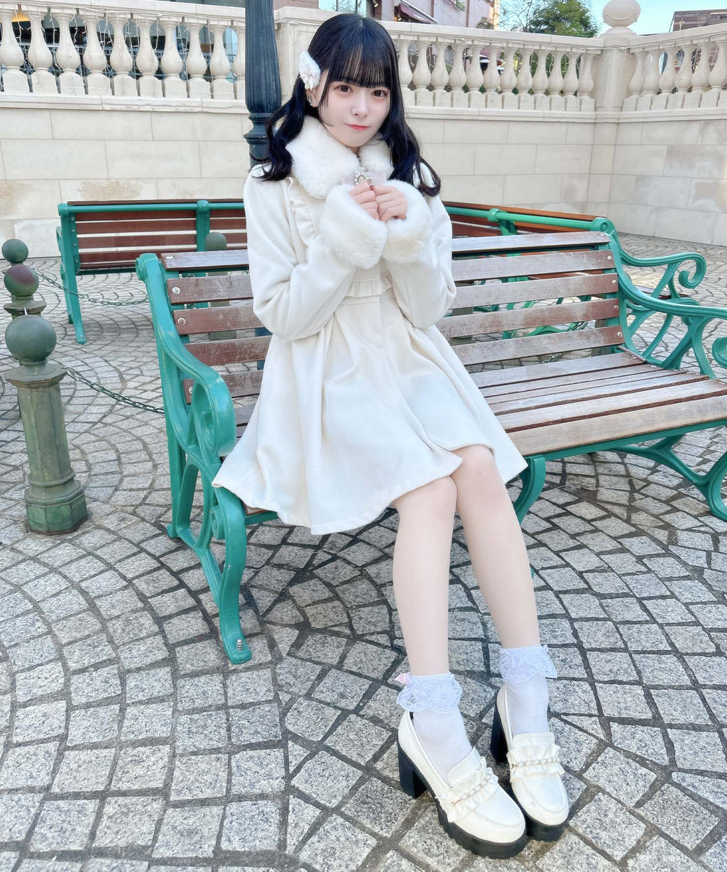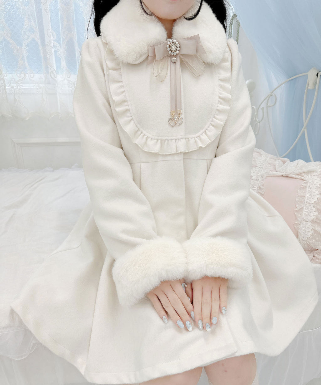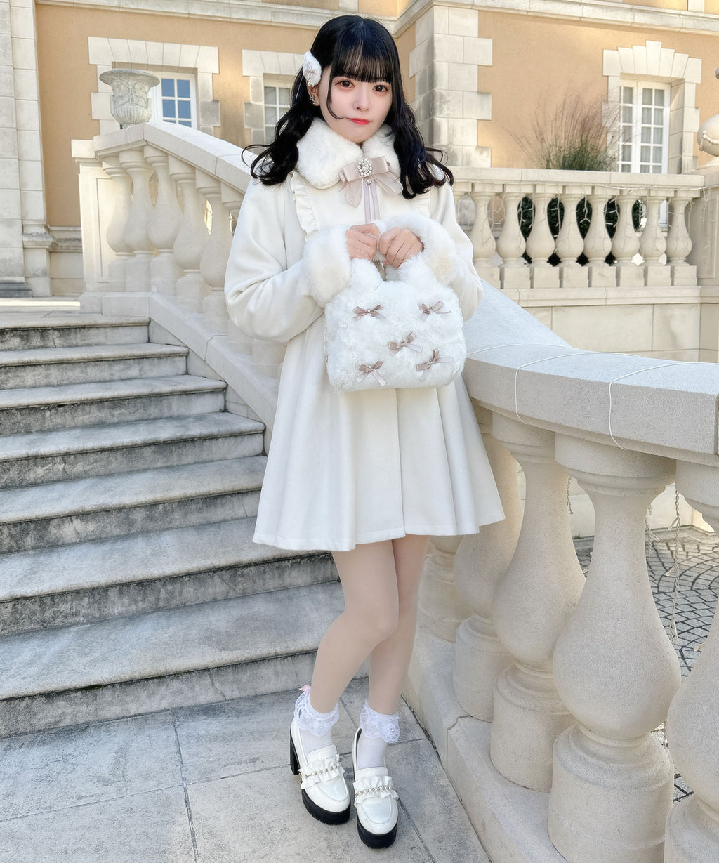 可愛的冬季外套,搭配多莉風的約克蕾絲邊和背部蝴蝶結。