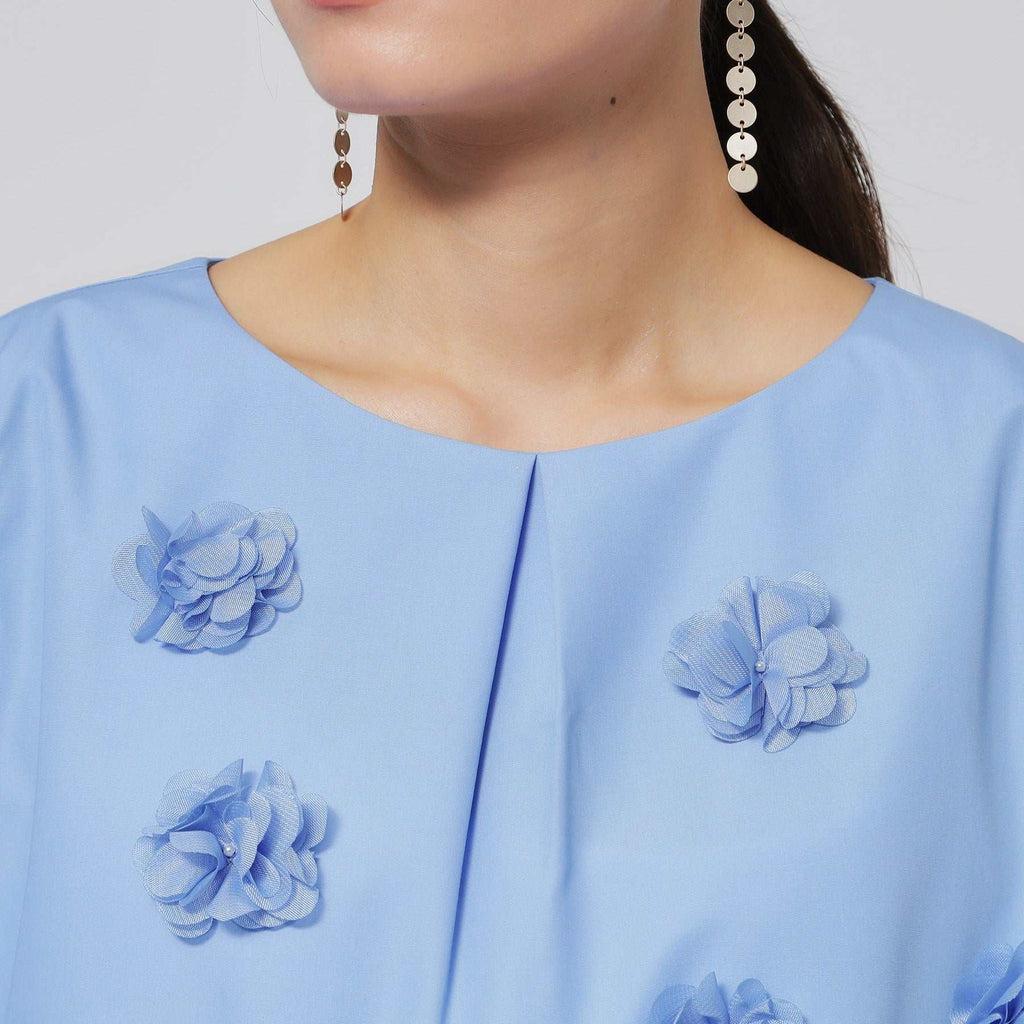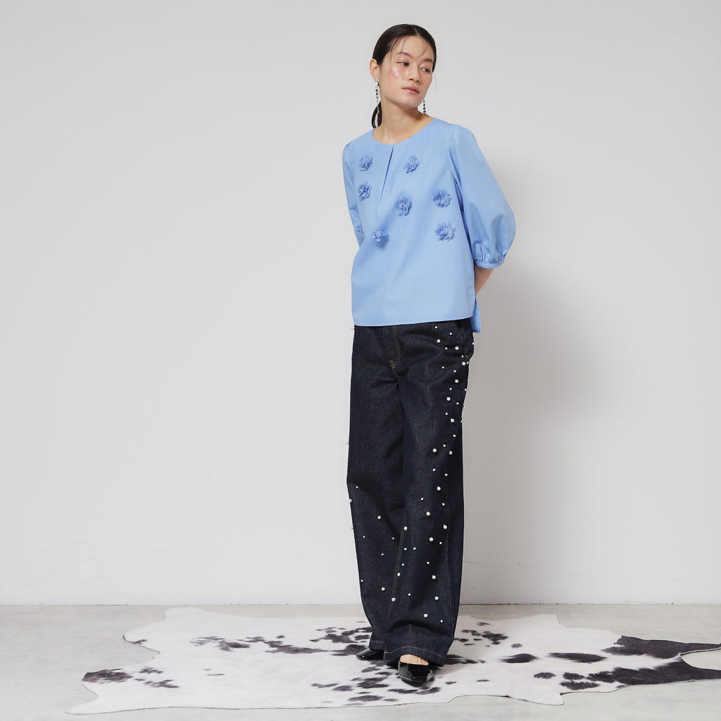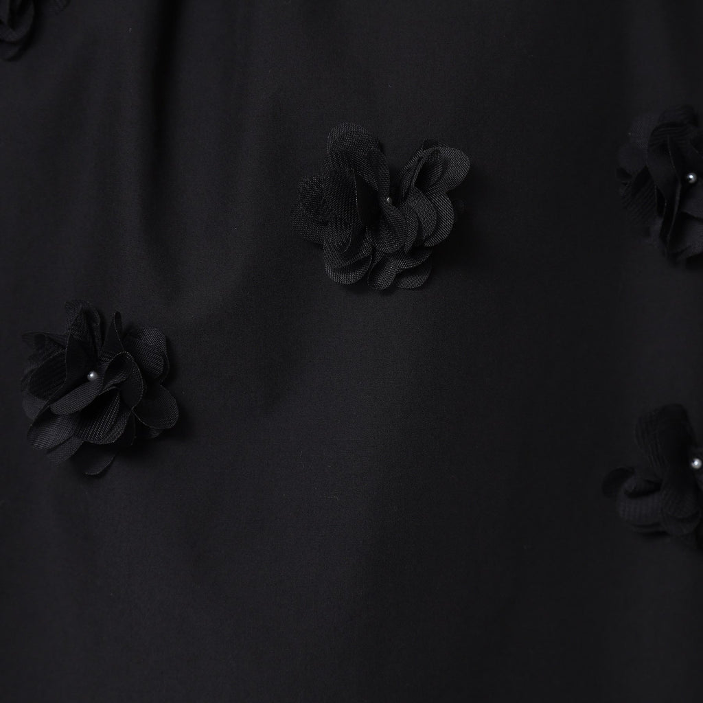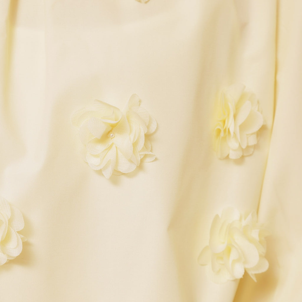 身頃上重疊著歐根紗的花朵,每朵花的中心都手工縫上了珠子,這是一件用心之作。