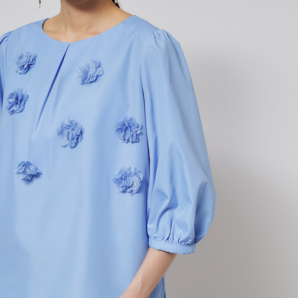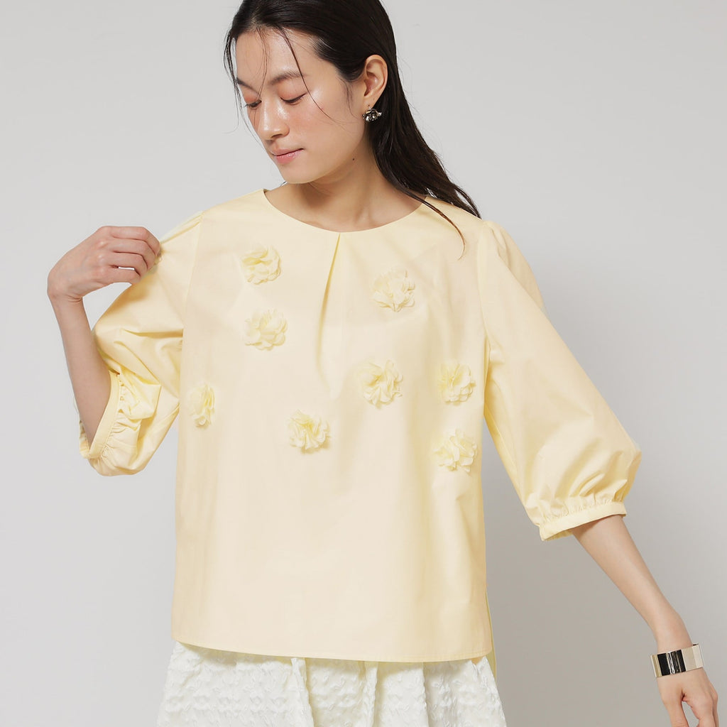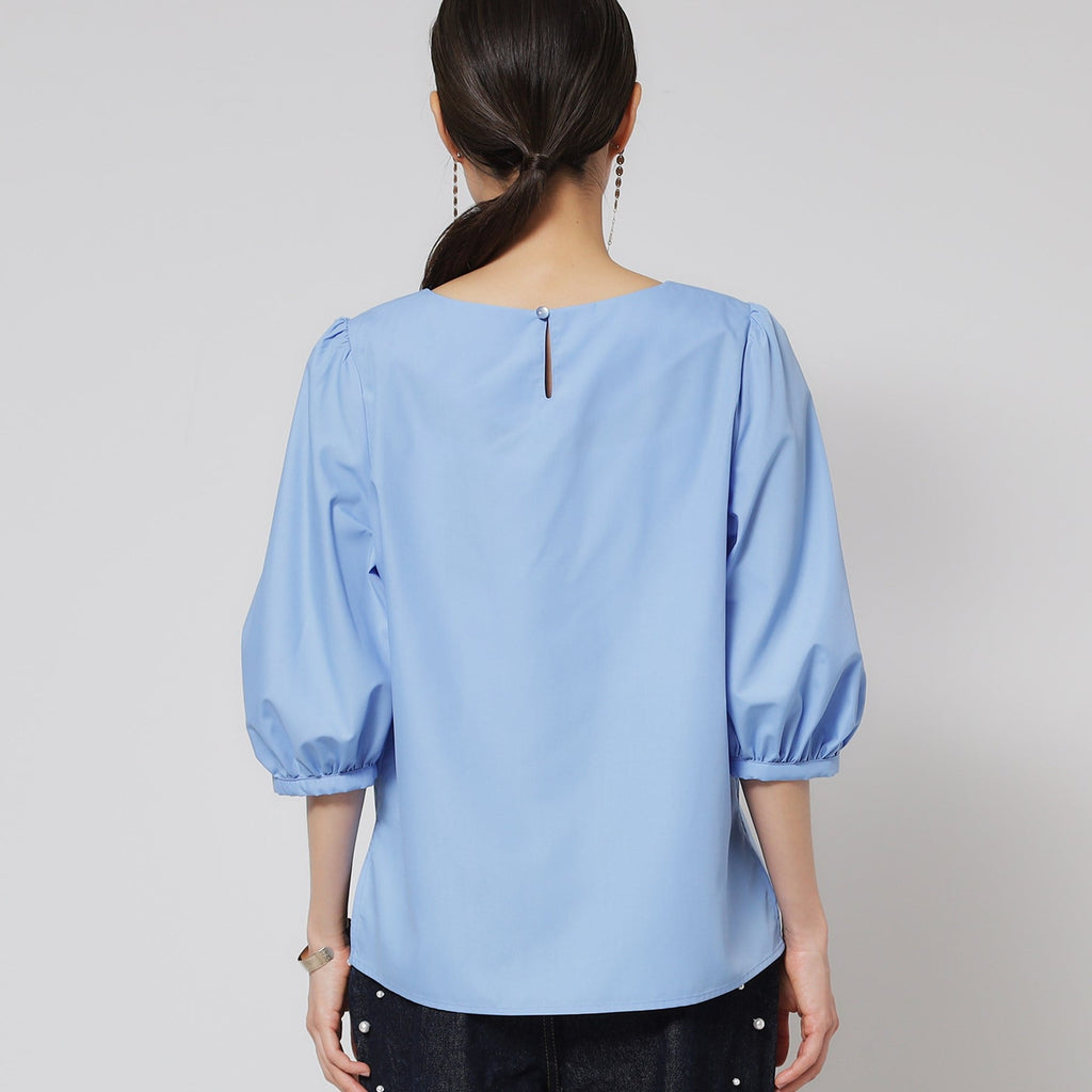 蓬鬆的泡袖是這款女性化襯衫的亮點。