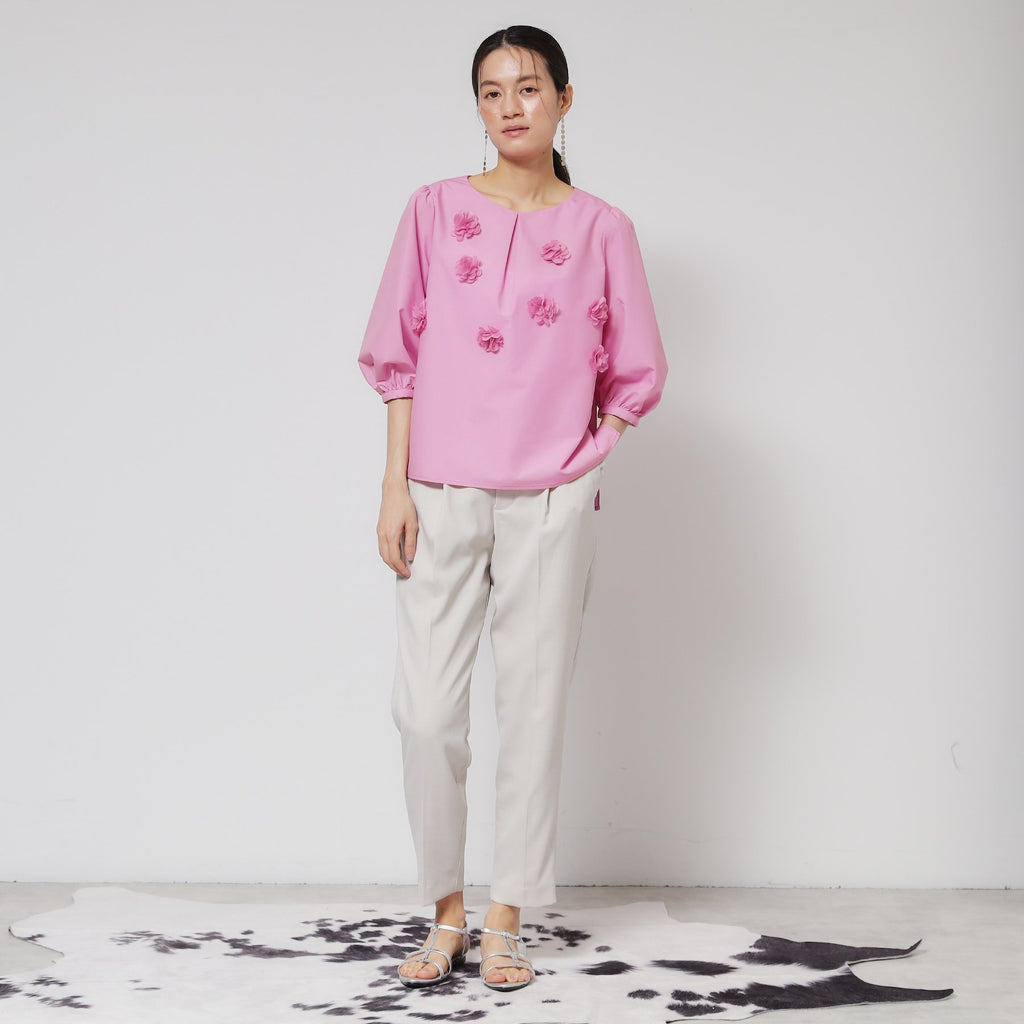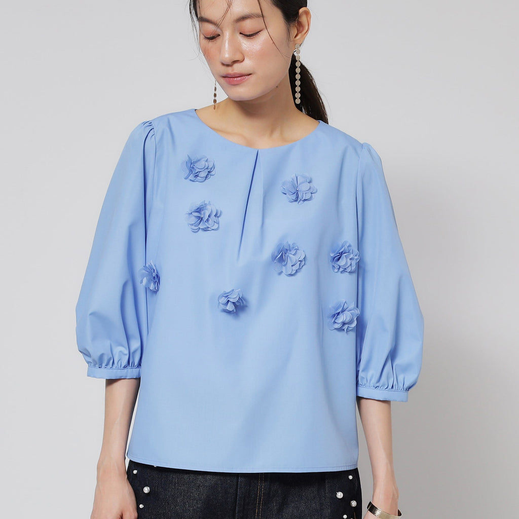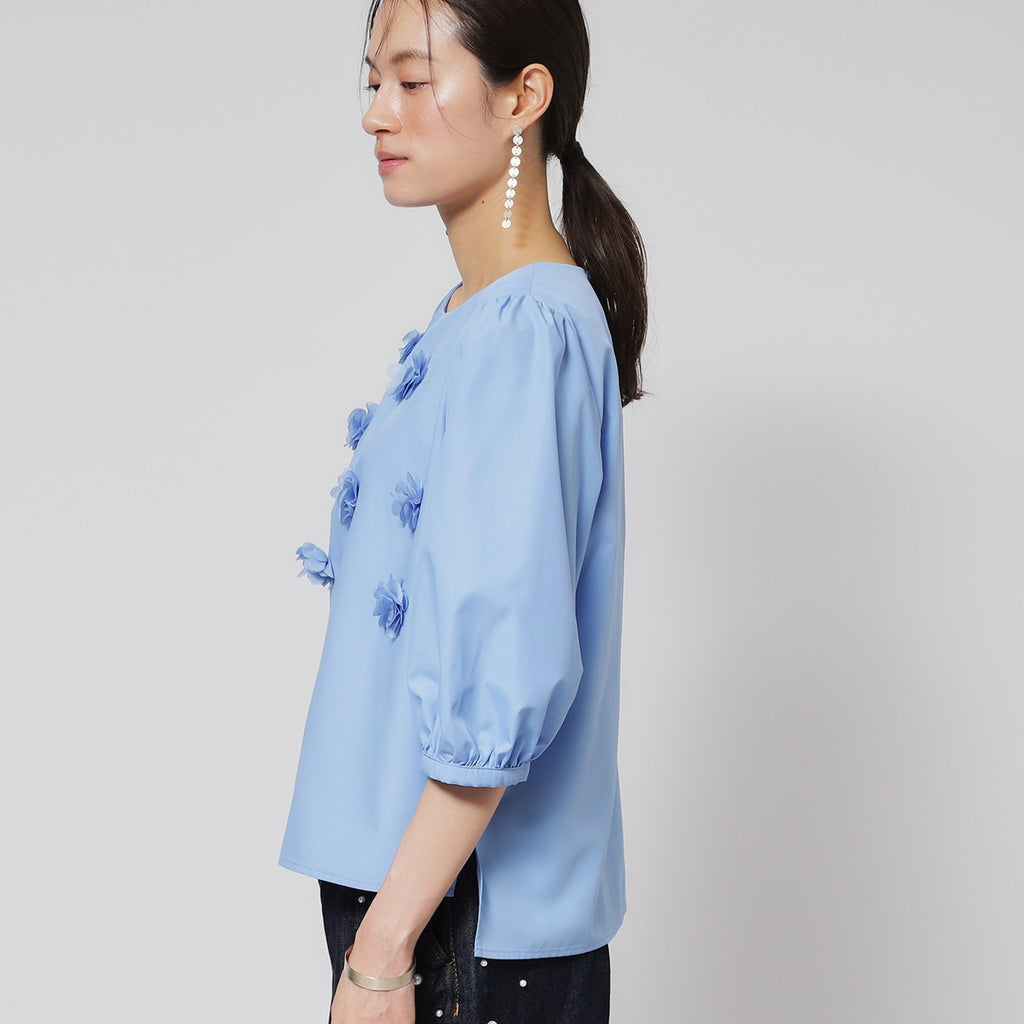 蓬鬆的泡袖是這款女性化襯衫的亮點。