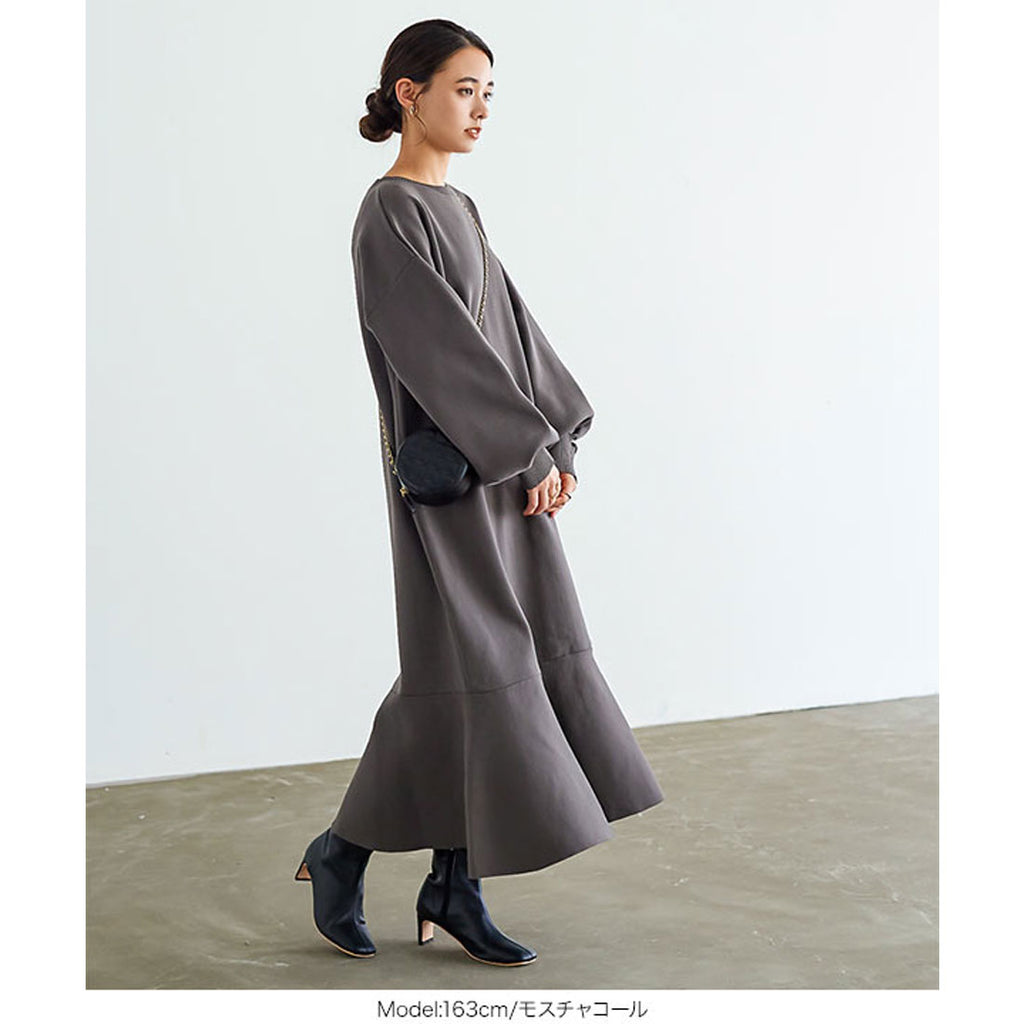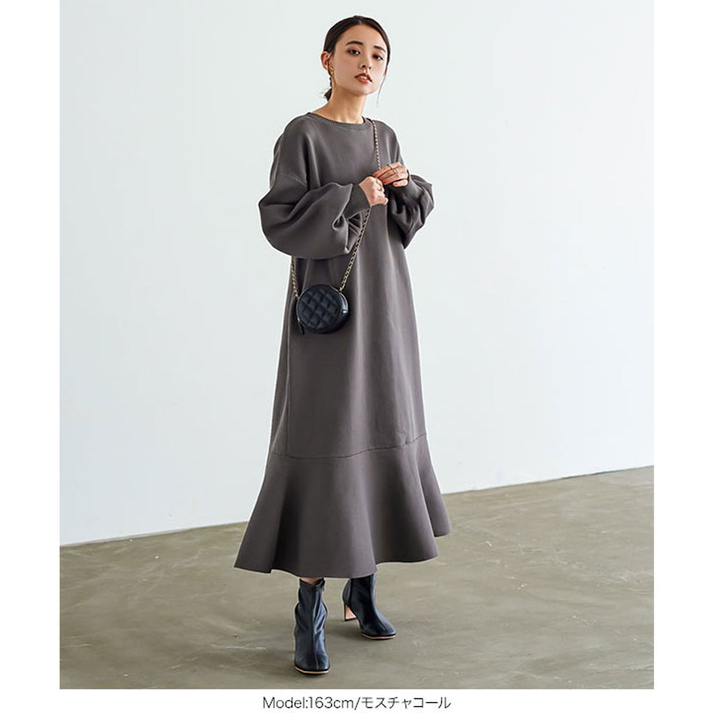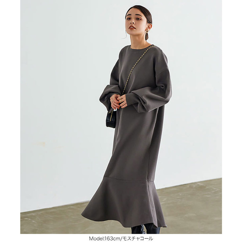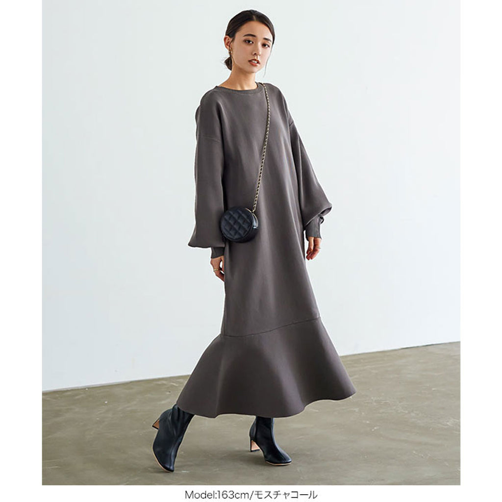 蓬鬆袖海豚裙泡棉針織連身裙 [E3122] 女士 壓縮針織 蓬鬆袖 長袖 長款 高針織 連身裙 海豚裙 成人 可愛 日常 休閒 體型修飾 秋冬 時尚 黑色 彈性