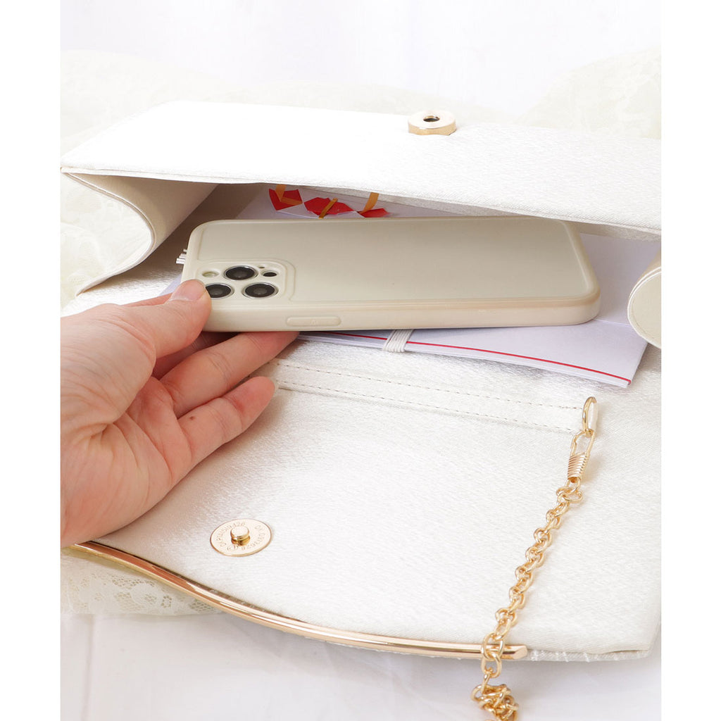 結婚式やセレモニーなど、華やかなシーンにお使いいただけるパーティーバッグ。