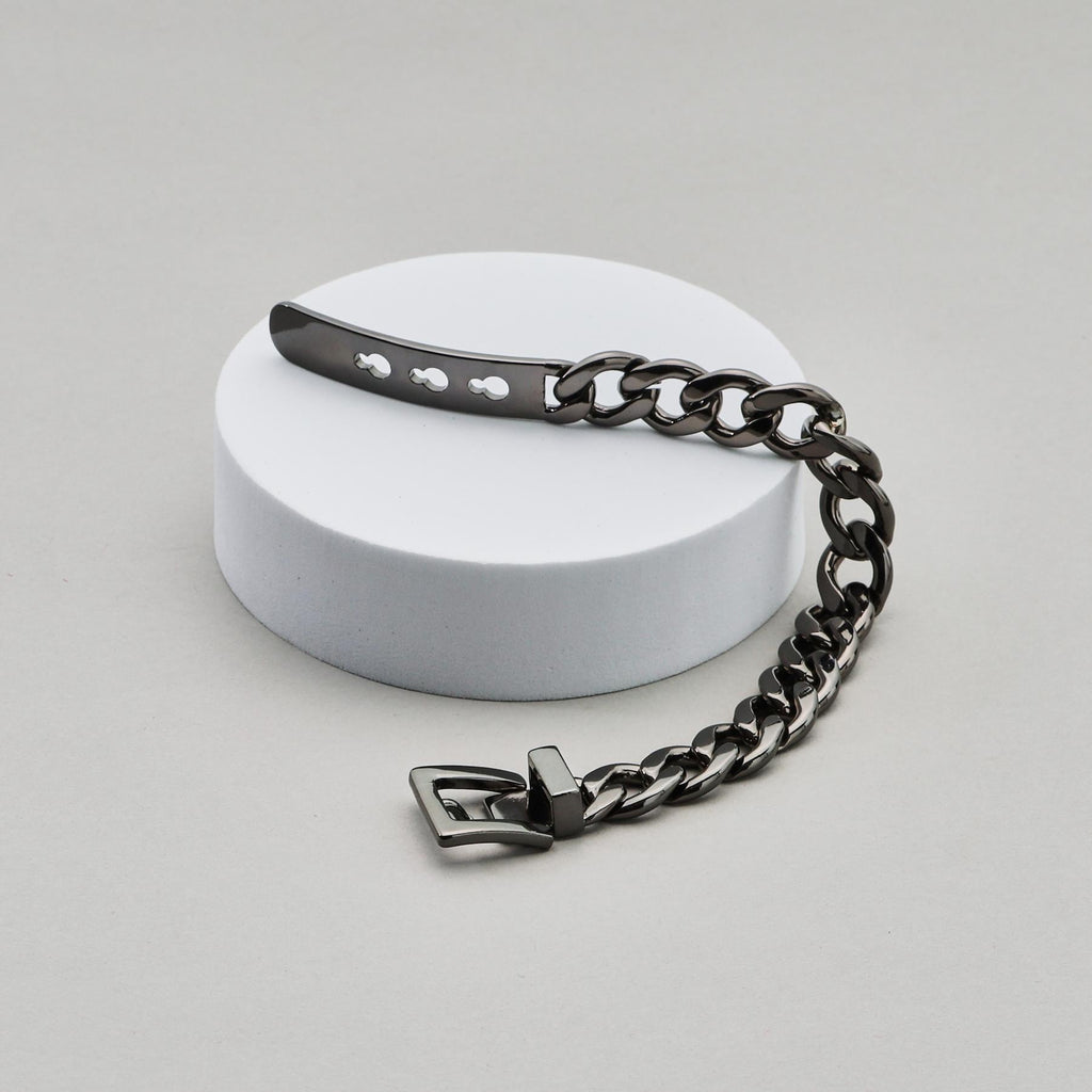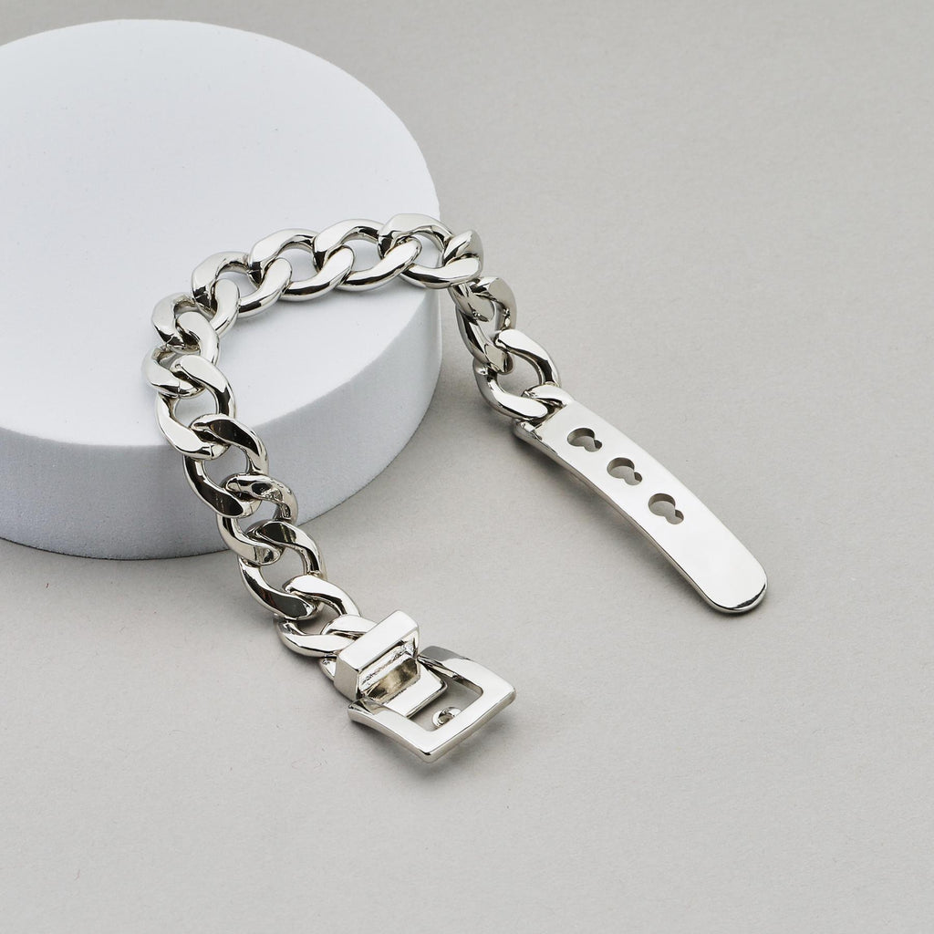 通過施加鎳顏色的光澤鍍層,打造出乾淨的印象的手鐲設計。