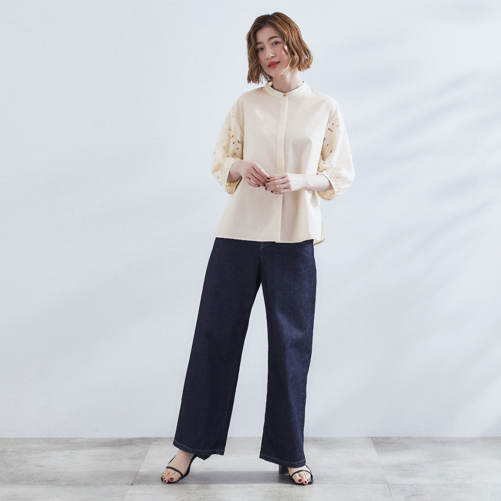由於採用剪花刺繡,即使是6分袖也能完美遮蓋令人在意的二頭肌,並且較為涼爽。