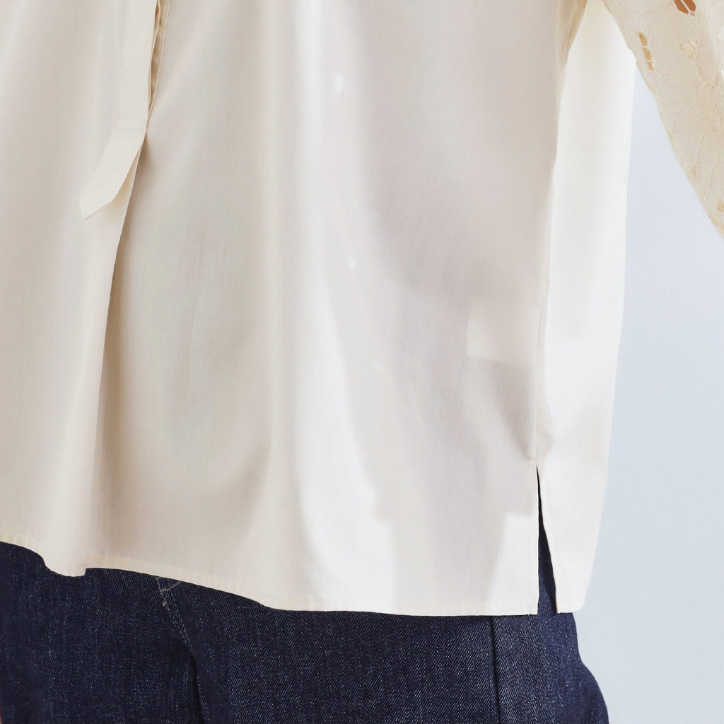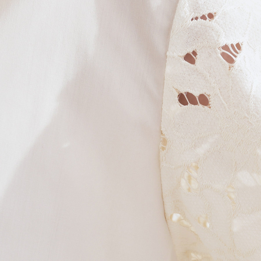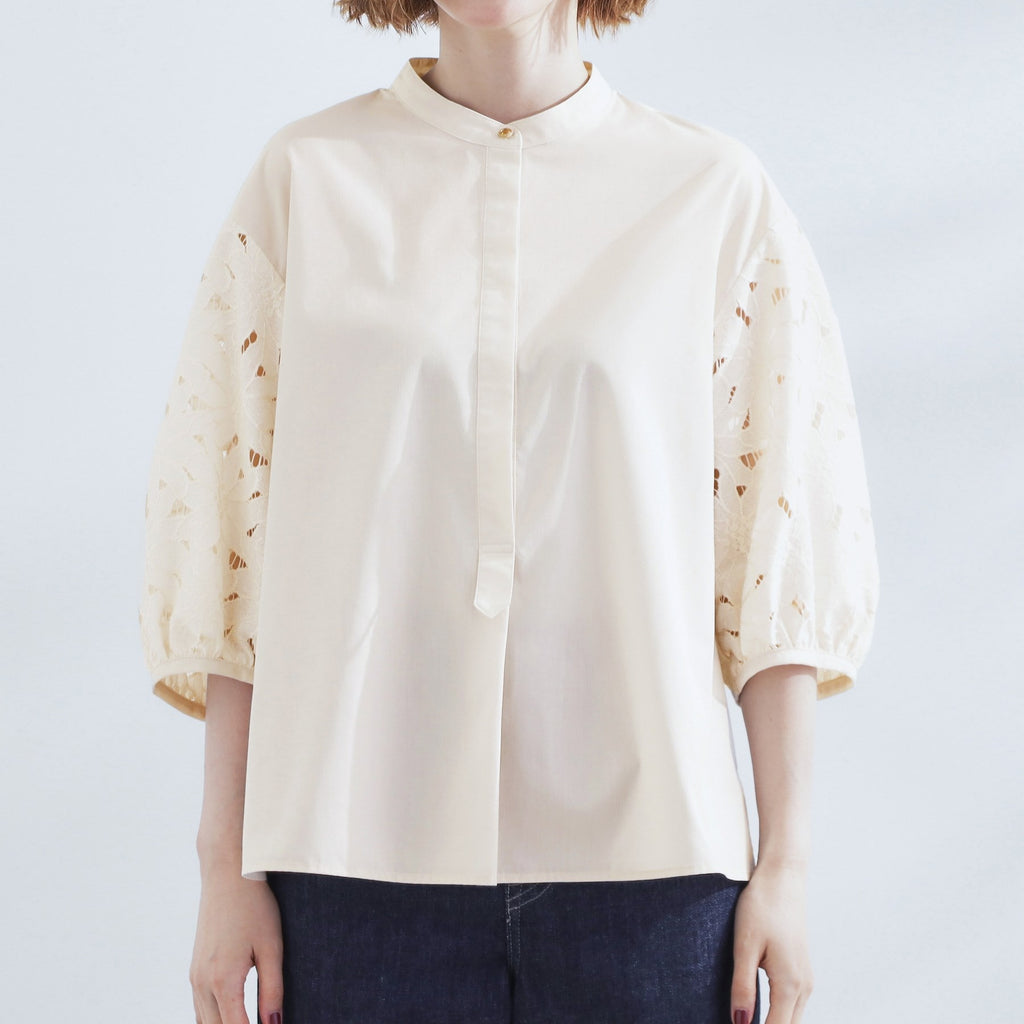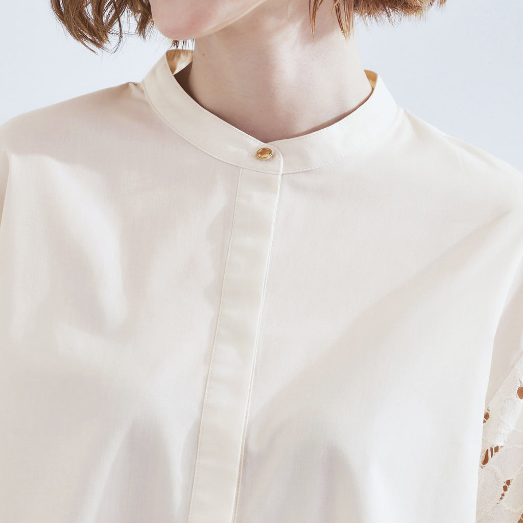 這是一款袖子使用刺繡布料的袖子設計襯衫。