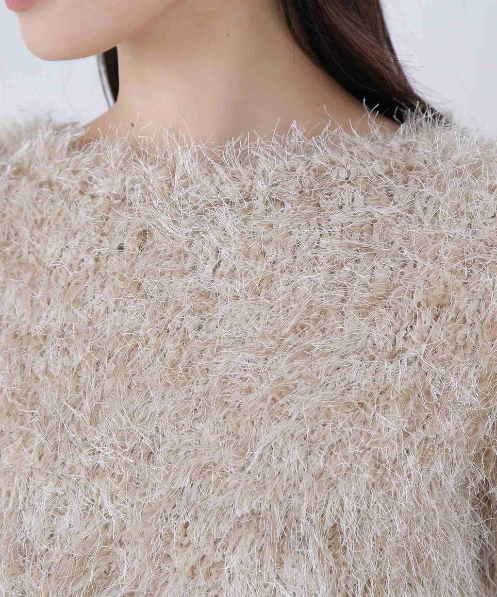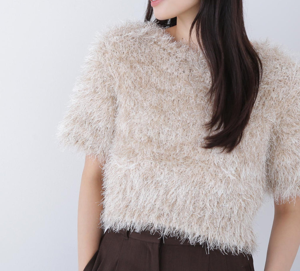 蓬鬆的シャギー,時尚又可愛的針織。輕盈的針織,穿著舒適,只需加入一件即可提升秋冬氛圍。由於是基本尺寸感,與下身搭配的設計也很容易。