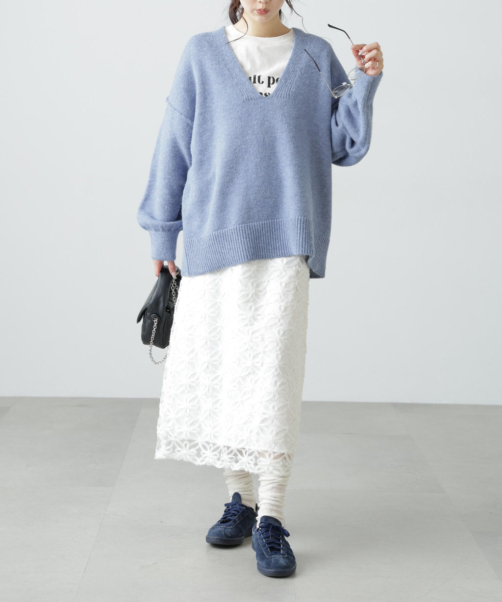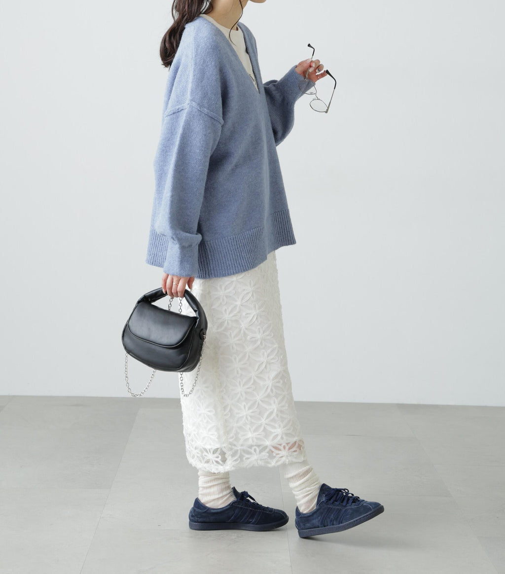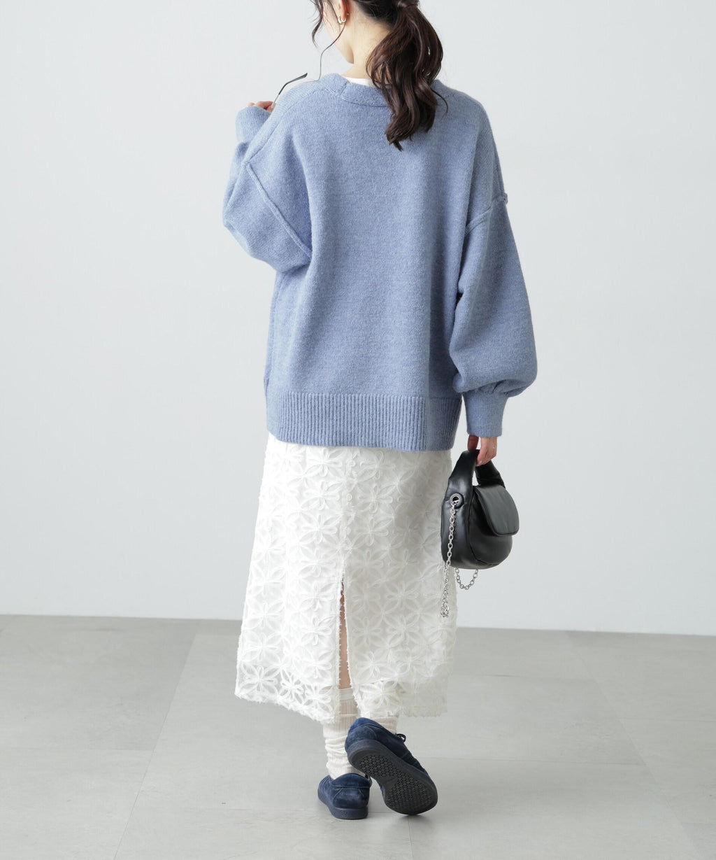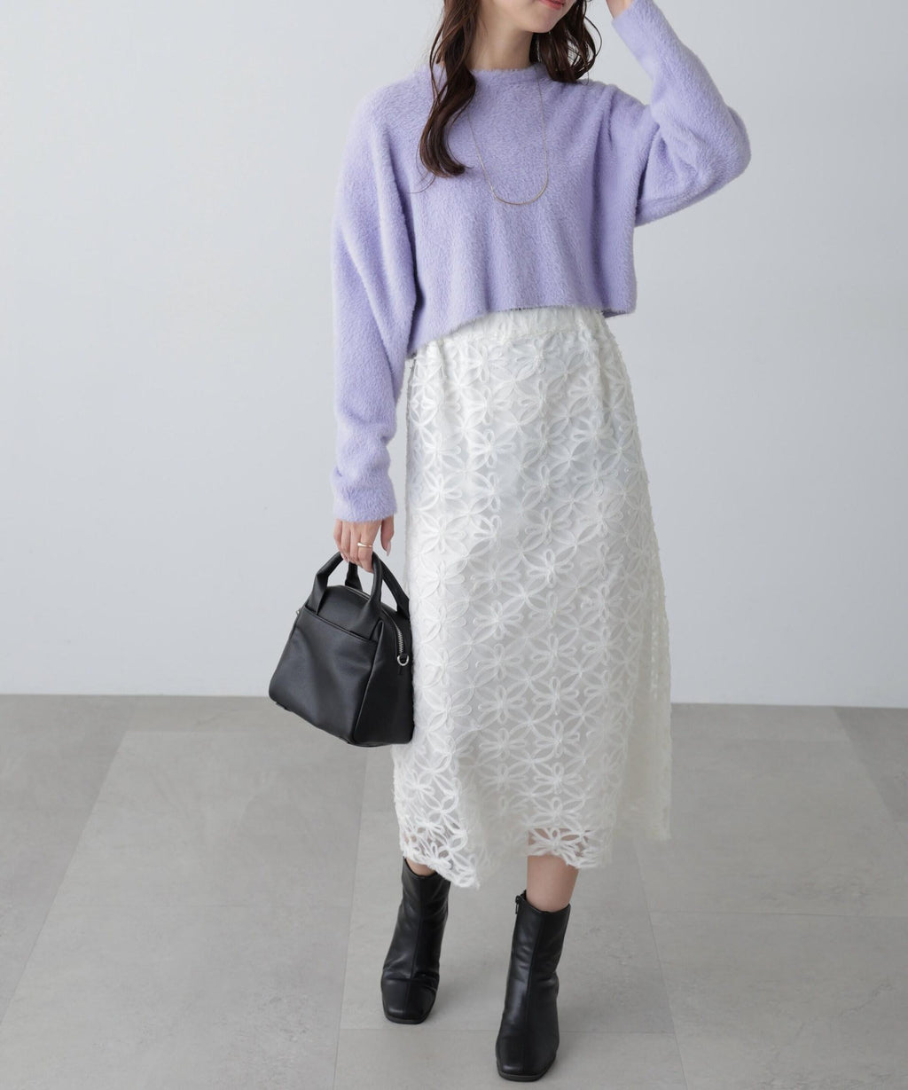 蕾絲上點綴立體花朵造型的窄裙,花朵採用幾何圖案風格,不會過於甜美,亦能融入休閒搭配。前腰圍採用內裡設計,線條簡潔。後方設有中心開衩,方便行走◎。由於採用透氣的薄紗材質,內裡為緞面布料,不易透光,讓人安心。細身的窄裙剪裁,建議搭配寬鬆的運動衫或毛衣!只需搭配簡單的上衣,也能展現華麗的造型。