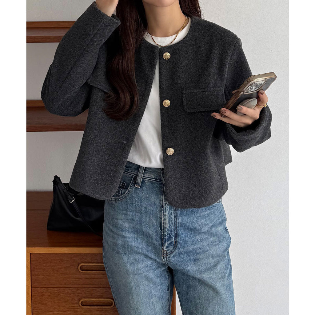 callautia callautia 羊毛風金色鈕扣無領夾克