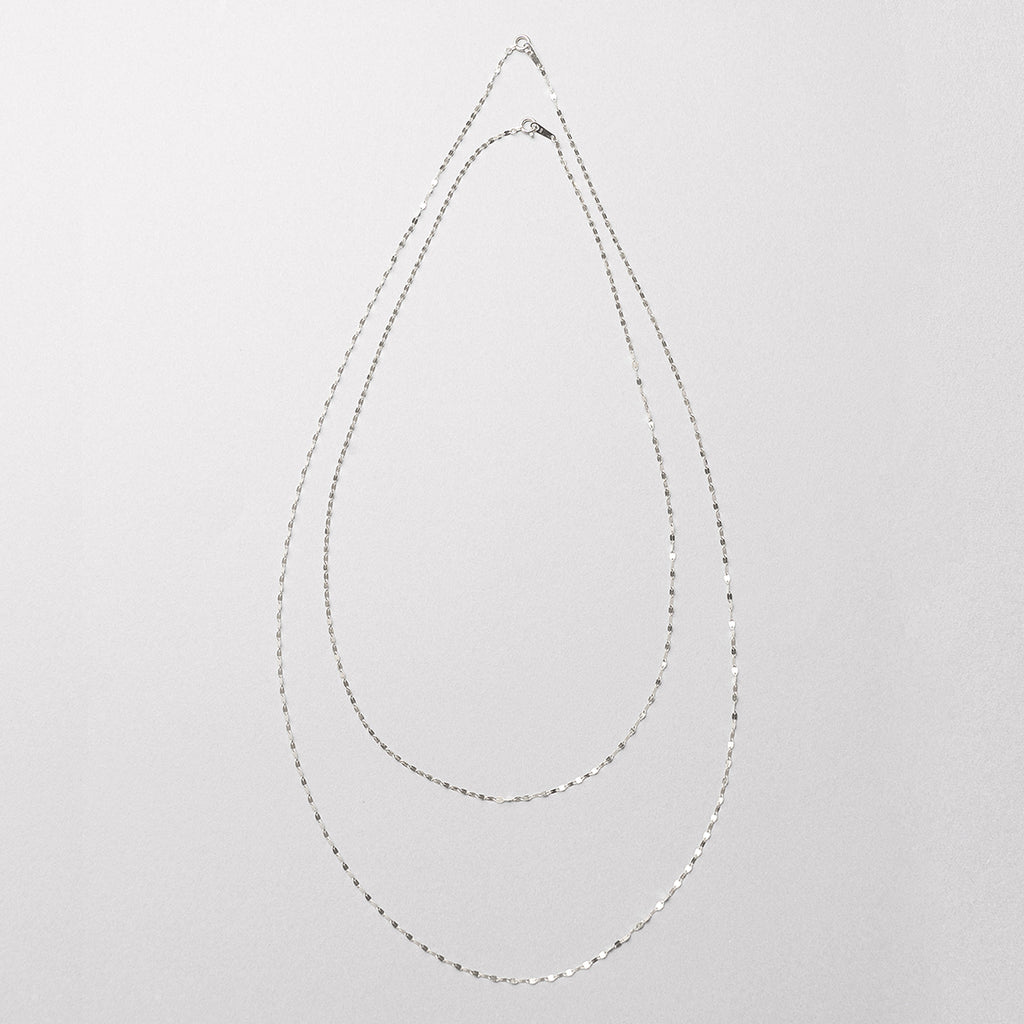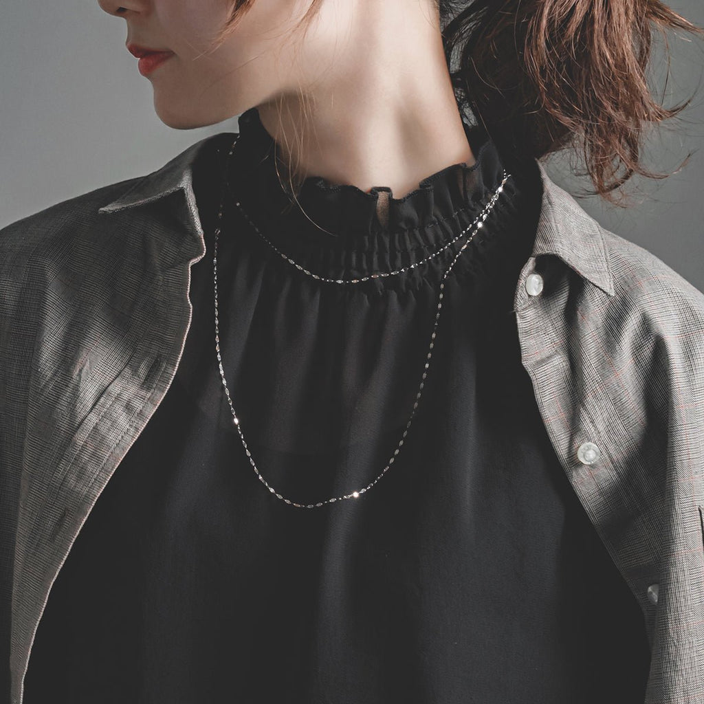 上質的白金反射出閃爍光芒的細緻鏈條項鍊。