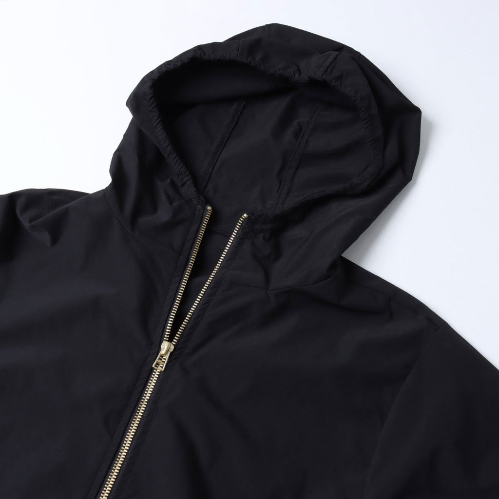 這是一件用有彈性的波普林布料製成的層次拉鍊外套。