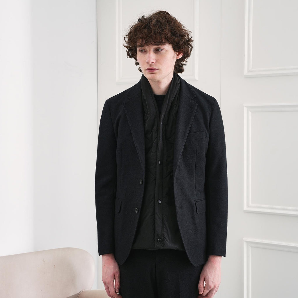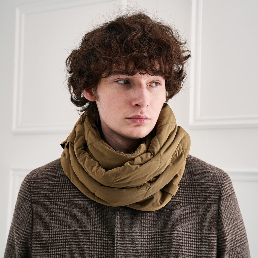 這款圍巾使用了辛薩雷特,兼具溫暖與舒適,作為夾克內的背心也能發揮作用。