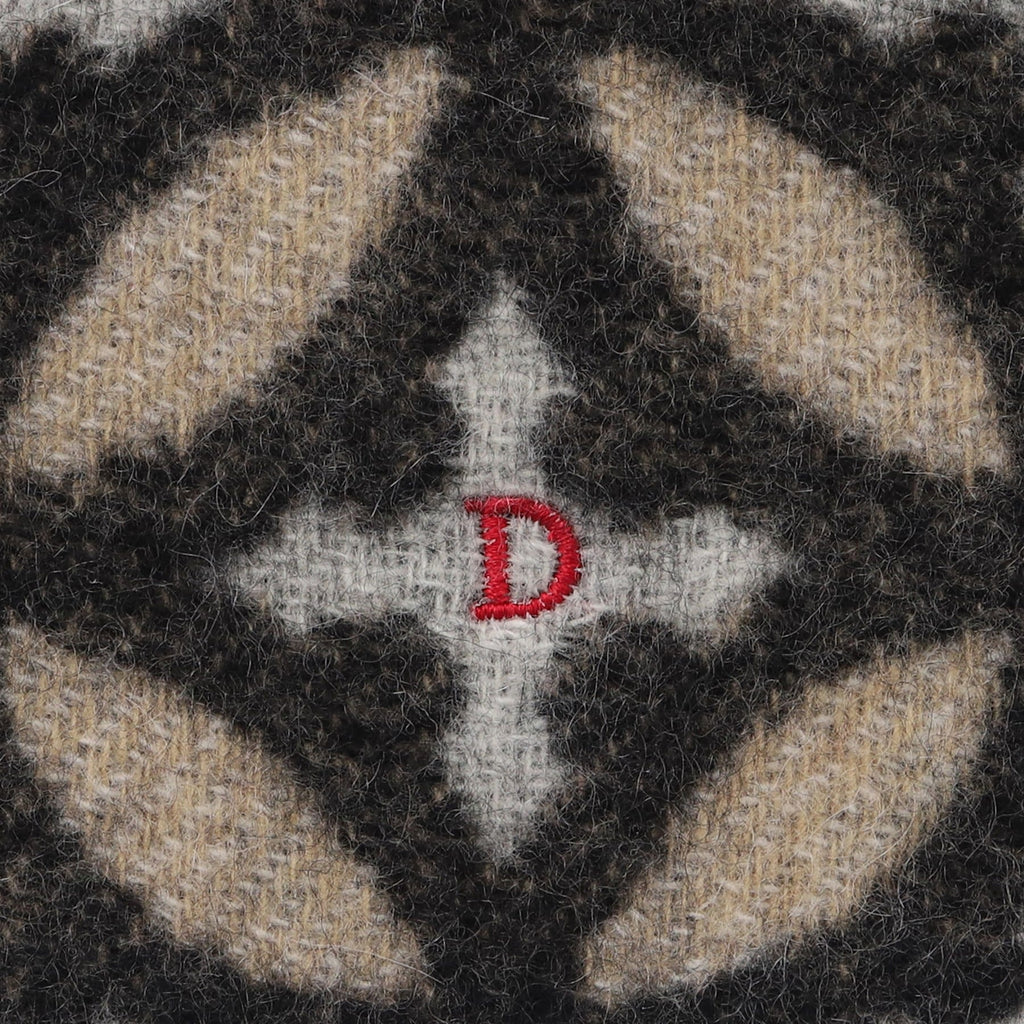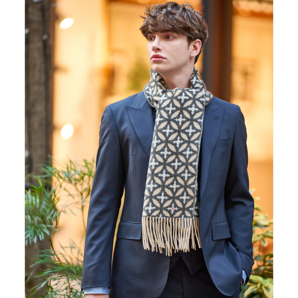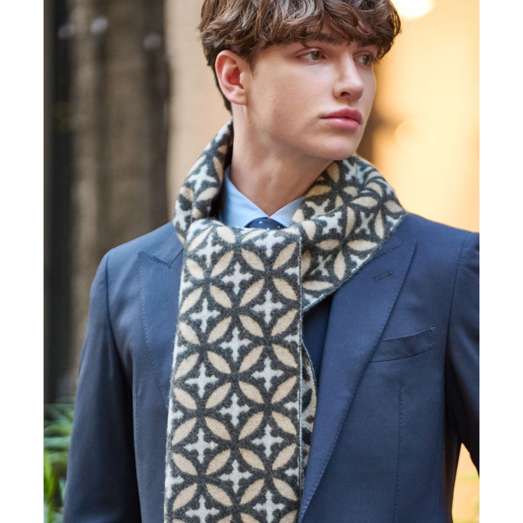 帶有打扮原始圖標圖案的消聲器,並在jacquard中重疊圓形圖案。